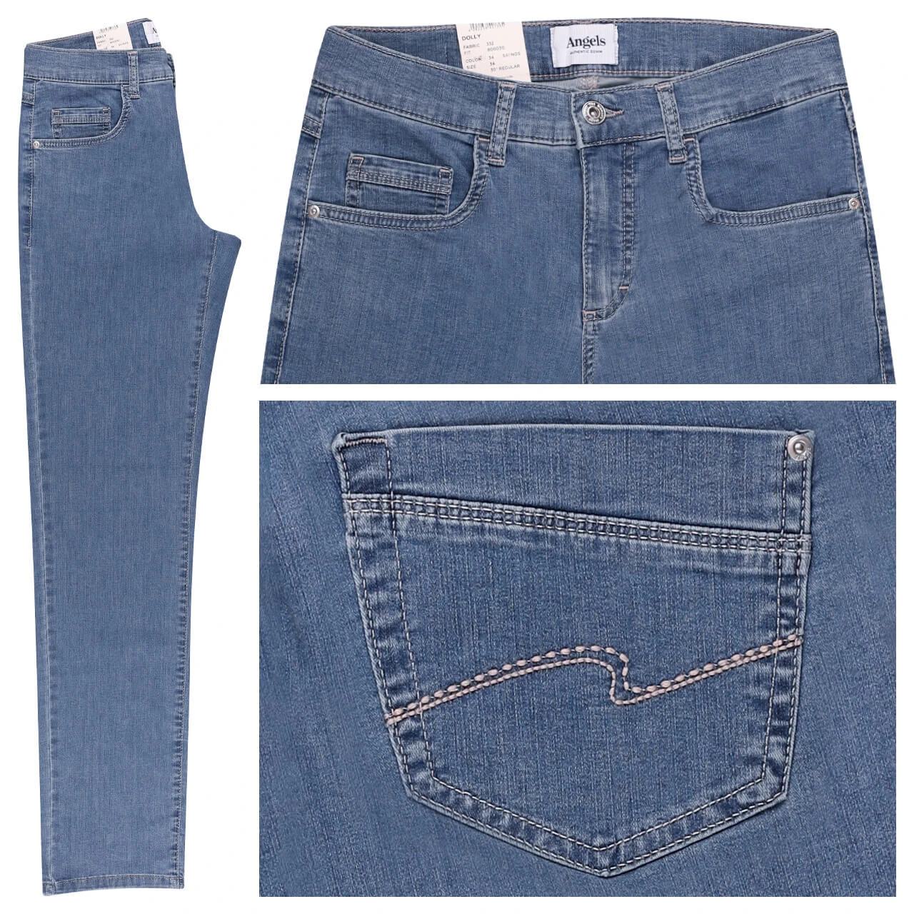 Zeitlos, schlicht, aber doch ganz besonders: Diese drei Eigenschaften beschreiben die Angels Dolly wohl am besten. Stickereien auf den beiden Gesäßtaschen, helle Nähte und ein silberner Verschlussknopf runden die Damenjeans ab.