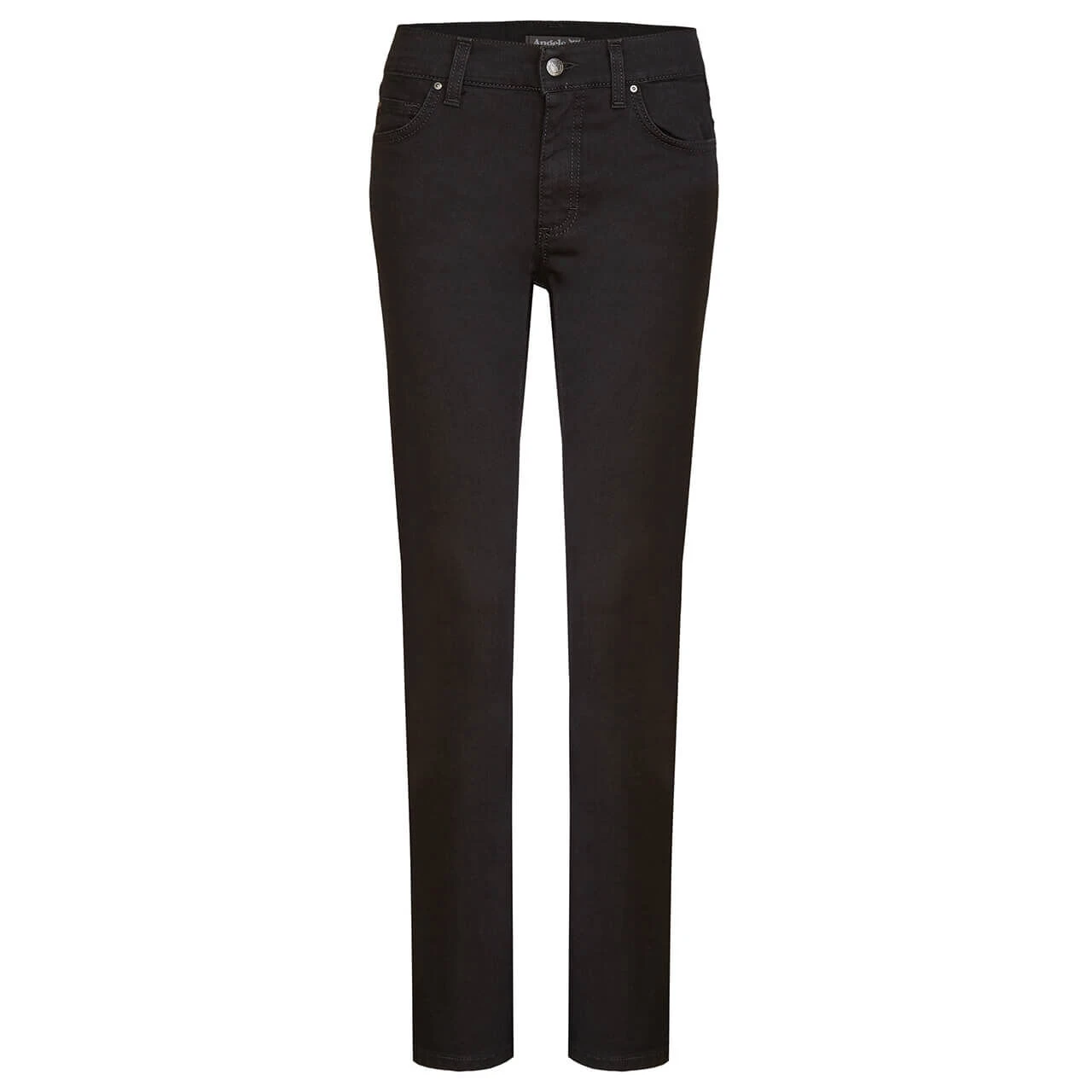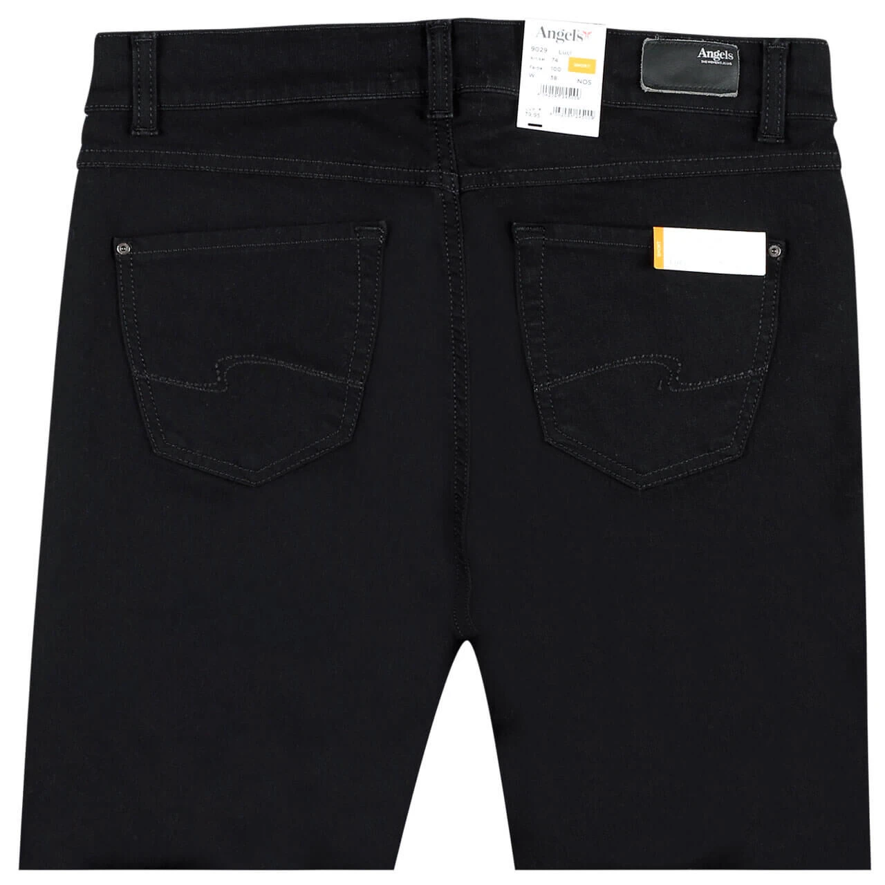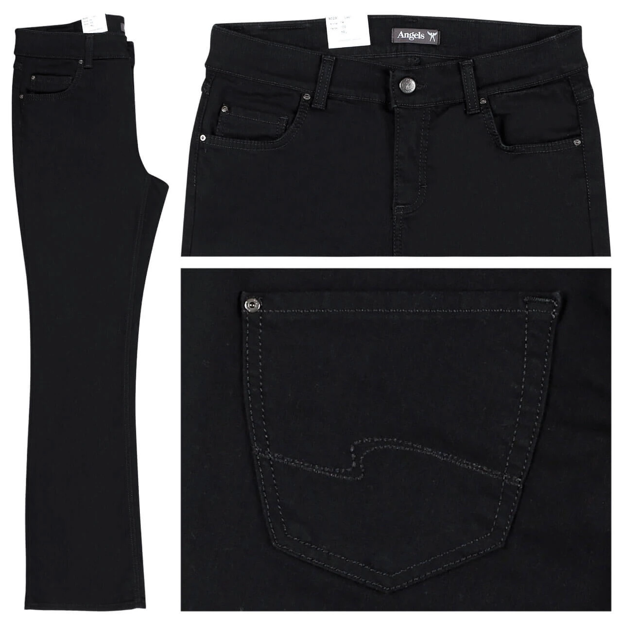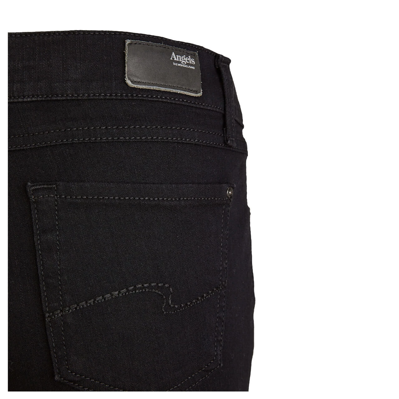 Komplett in Schwarz präsentiert sich diese Angels Luci. Ihr Denim ist durchgefärbt und hat keine Verwaschungen! Die Stretchjeans mit schmalem Oberschenkel hat ein ausgestelltes Bein und fällt so besonders weich auf die Schuhe. Dezente Stickereien auf den Gesäßtaschen runden den Look der Jeans mit regulärer Bundhöhe ab. Ein hellblauer Strickpullover für Damen lässt Ihr Outfit nicht zu düster wirken!