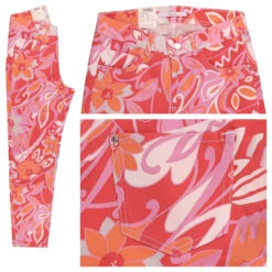 Stretch Damen 7/8 Baumwollhose in Pink mit Print