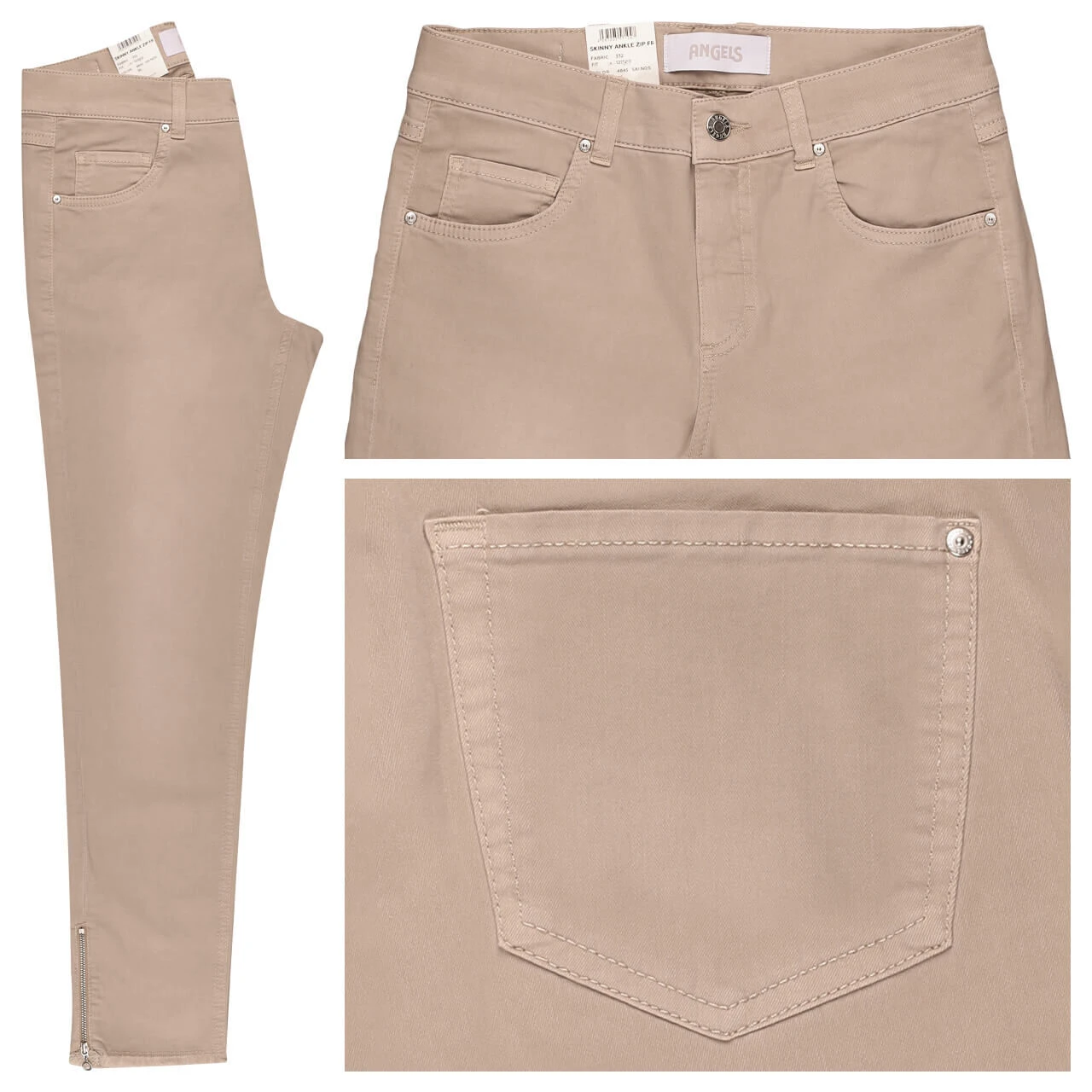 Stretch Damen Ankle Jeans Skinny Zip in Hellbeige angewaschen