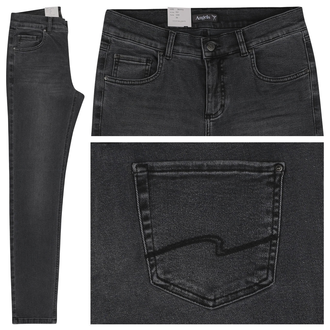 Einfach authentisch und kernig wirkt diese Angels Skinny: Das dunkelgraue Modell verspricht einen Jeanslook der 70er Jahre und hat eine entsprechende Köperwebung. Diese fühlt sich angenehm griffig und etwas dicker an! Verwaschungen auf den Beinen in Bleistiftform und eingearbeitete Sitzfalten unter den Fronttaschen verstärken die coole Optik der Damenjeans. Der schwarze Lederpatch am mittelhohen Bund vollendet das stimmige Bild. Damen T-Shirts in knalligen Farben ergänzen diese Jeans optimal.