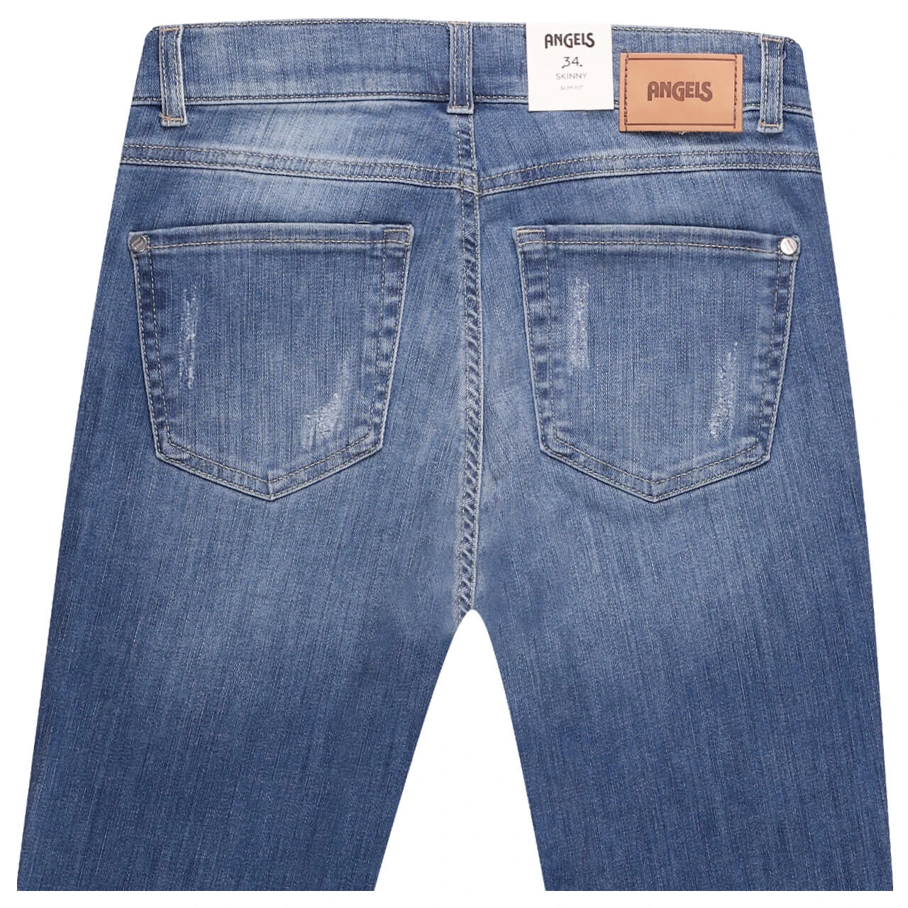 Diese Angels Skinny hat einen außergewöhnlichen Look: Die beiden Fronttaschen sitzen tief und stehen dadurch sofort im Fokus des Designs. Auch die vielen unterfütterten Destroyed-Effekte auf der Front und auf den Gesäßtaschen fallen auf. Jede dieser Damenjeans ist übrigens ein Unikat!