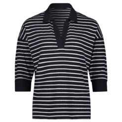 Damen 3/4 Arm Shirt in Dunkelblau gestreift
