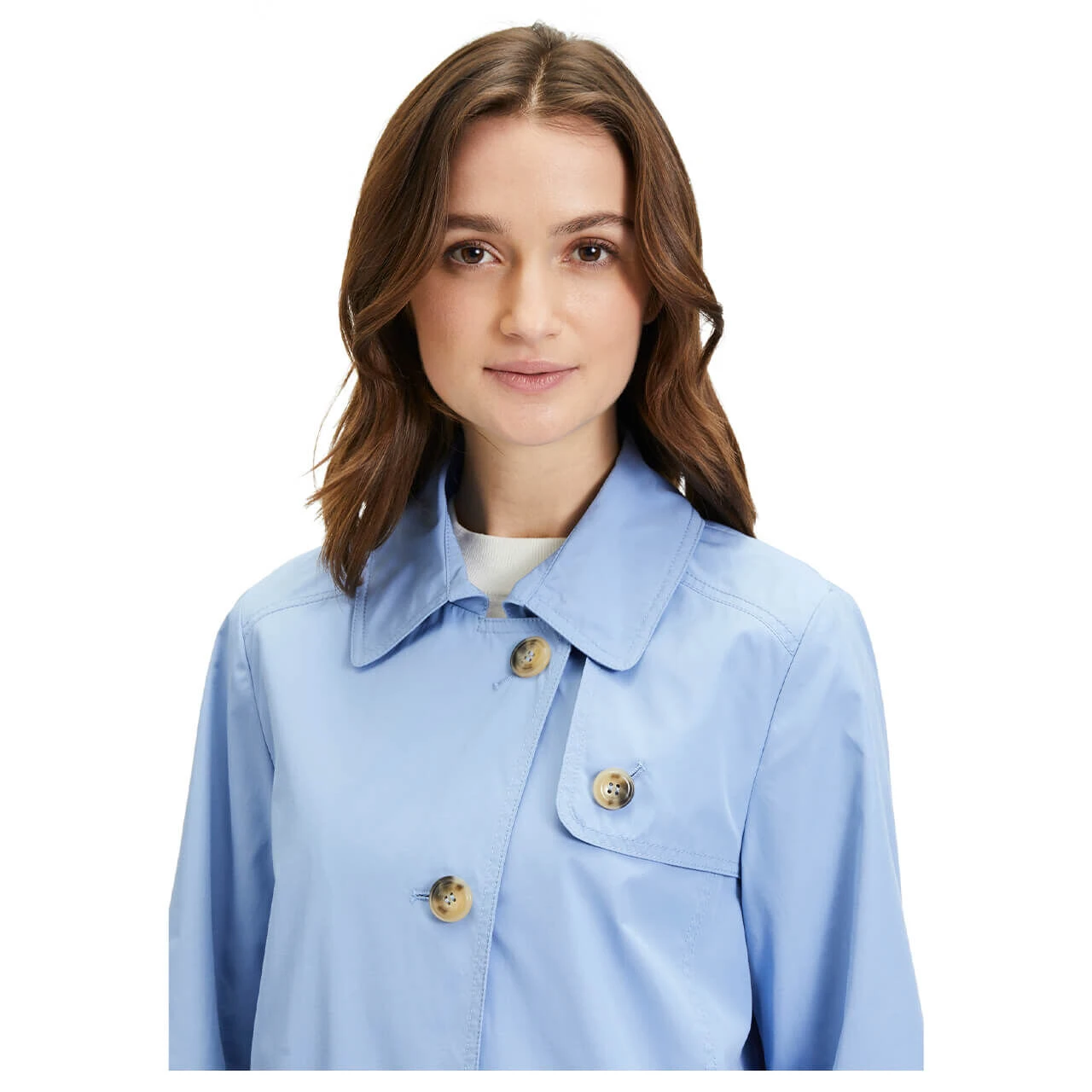 Hingucker der Betty Barclay Damenjacke ist der Farbton! Das Blau einer Kornblume steigert die Vorfreude auf sonnige Tage, an denen Sie diesen Trenchcoat ausführen können.