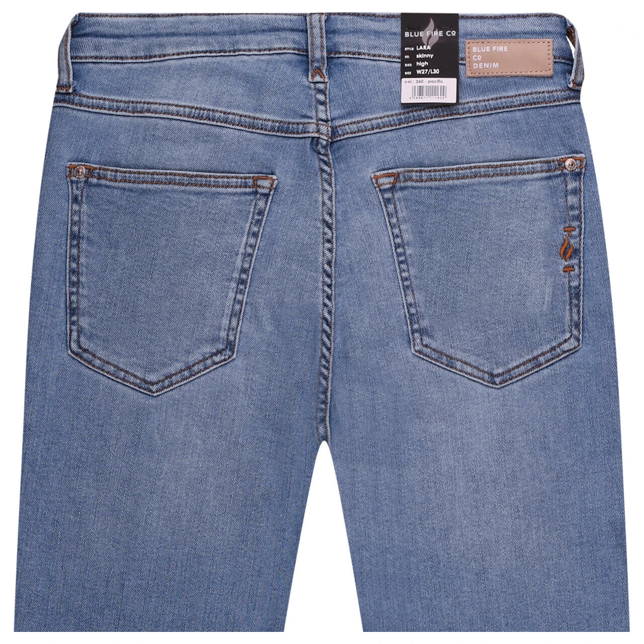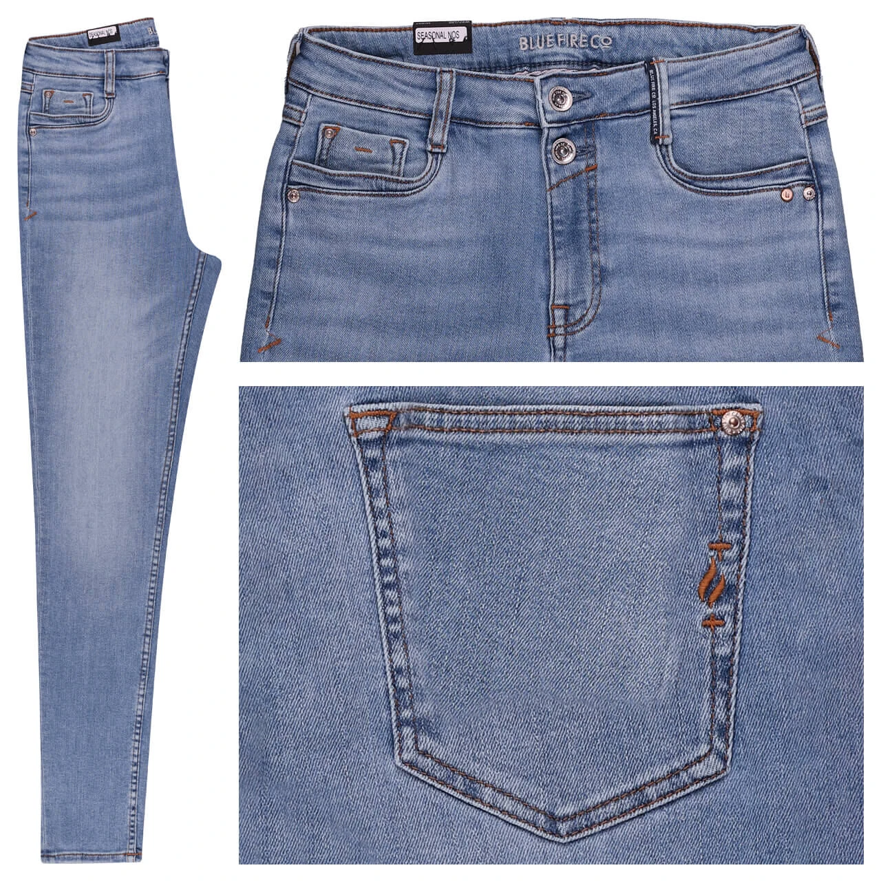 Die Blue Fire Lara überzeugt dank ihrer hellen, freundlichen Farbe sowie ein paar kleinen Besonderheiten: Eine Doppelknopfleiste mit silbern-schimmernden Knöpfen und ein Fronttaschen-Design, das von unterschiedlichen Nieten geziert wird, verleihen dieser Damenjeans einen ganz individuellen Charme. Das hochwertige Stretchmaterial sorgt darüber hinaus für einen allseits bequemen Sitz und eine langlebige Passform.