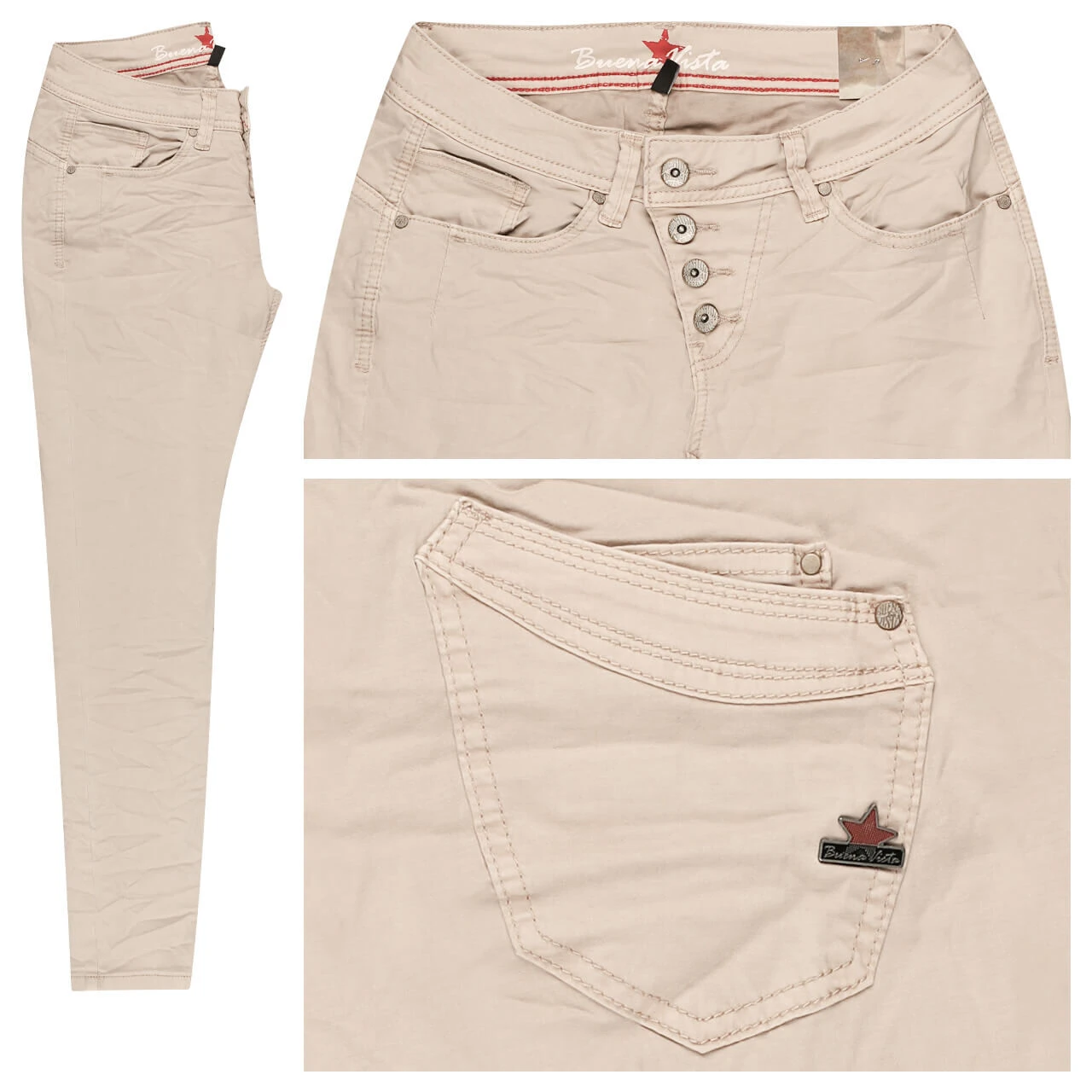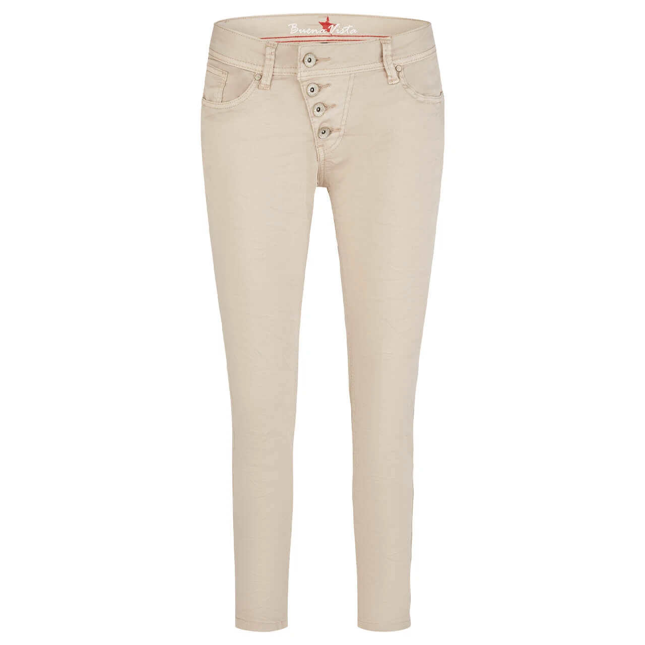 Helle Freude! Diese Buena Vista Malibu überzeugt in einem besonders hellen Beige. Die sanfte Farbe schenkt Ihnen aber nicht nur eine gute Portion Positivität, sie passt auch toll zum ebenso soften Material. In Kombination mit der 7/8-Länge eignet sich diese Damenhose somit vor allem für wärmere Tage.