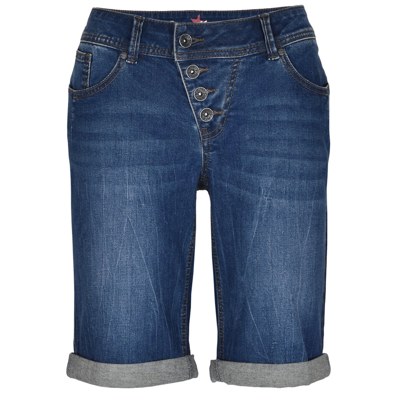 Damenjeans Malibu-Short Stretch Denim in Mittelblau angewaschen