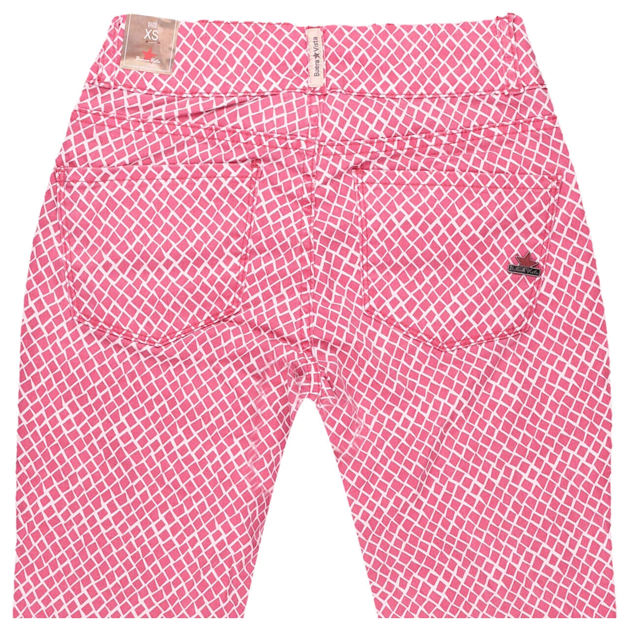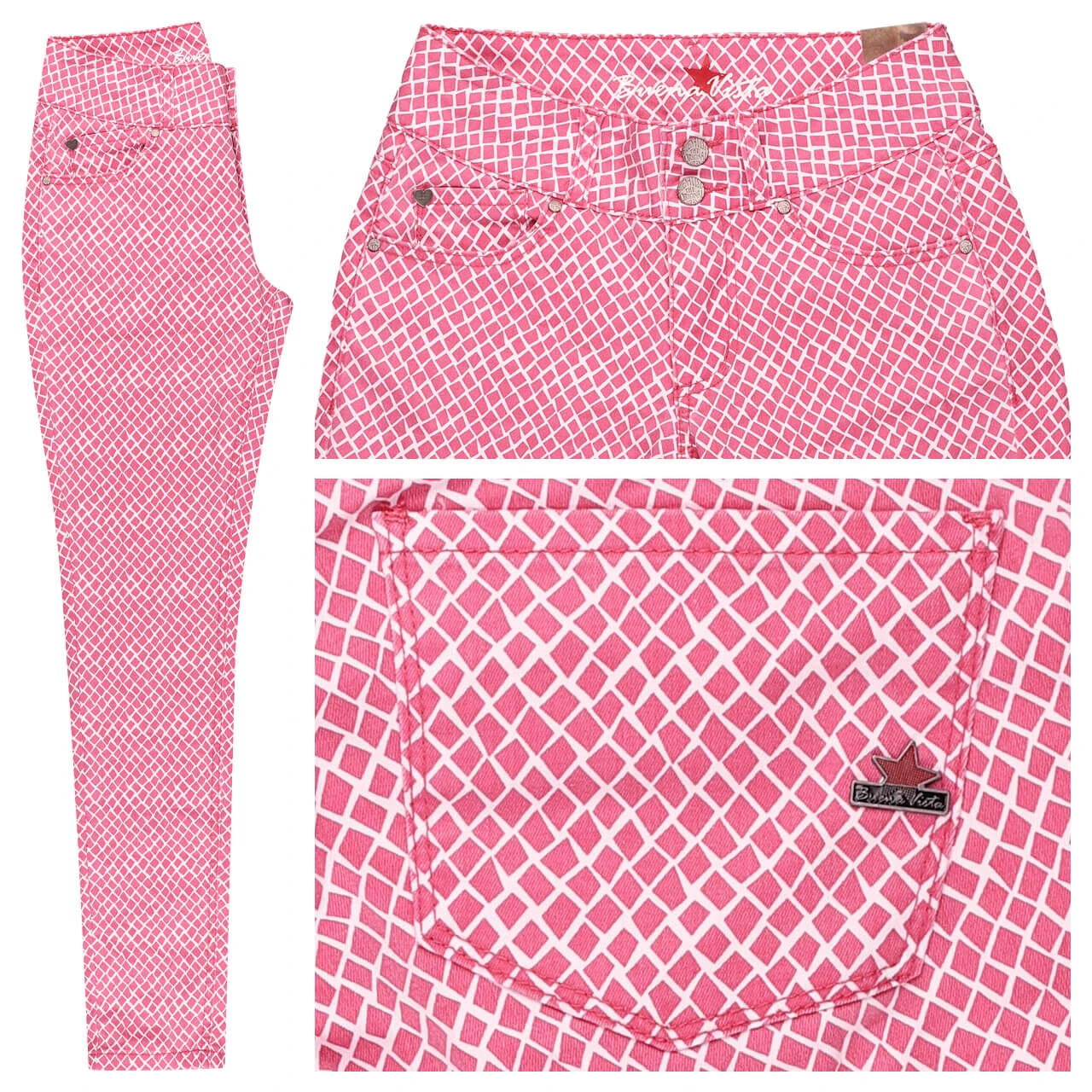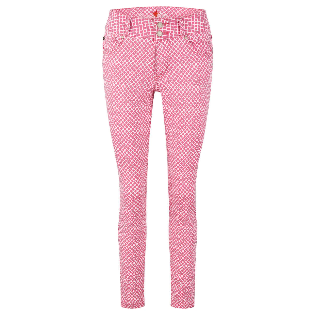 Damen Ankle Baumwollhose Tummyless Cropped Stretch Twill in Pink mit Print