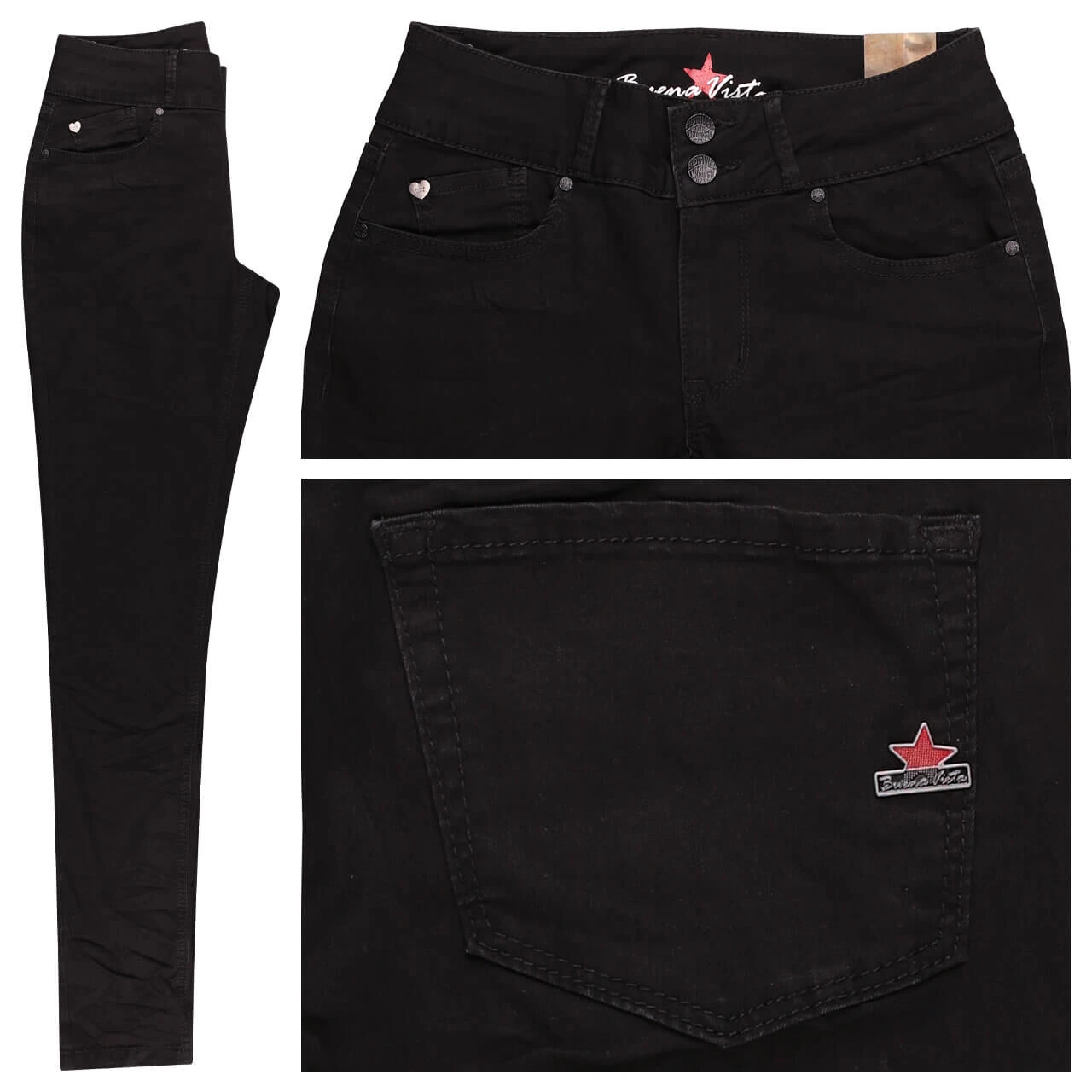 Shape it, Baby! Die Buena Vista Tummyless bringt Ihre Figur so richtig in Form und der elastische Stoff garantiert gleichzeitig einen hohen Tragekomfort. Die zwei Verschlussknöpfe und das dezente Markenlogo auf der rechten Gesäßtasche runden das Design der pechschwarzen Five-Pocket-Hose perfekt ab.