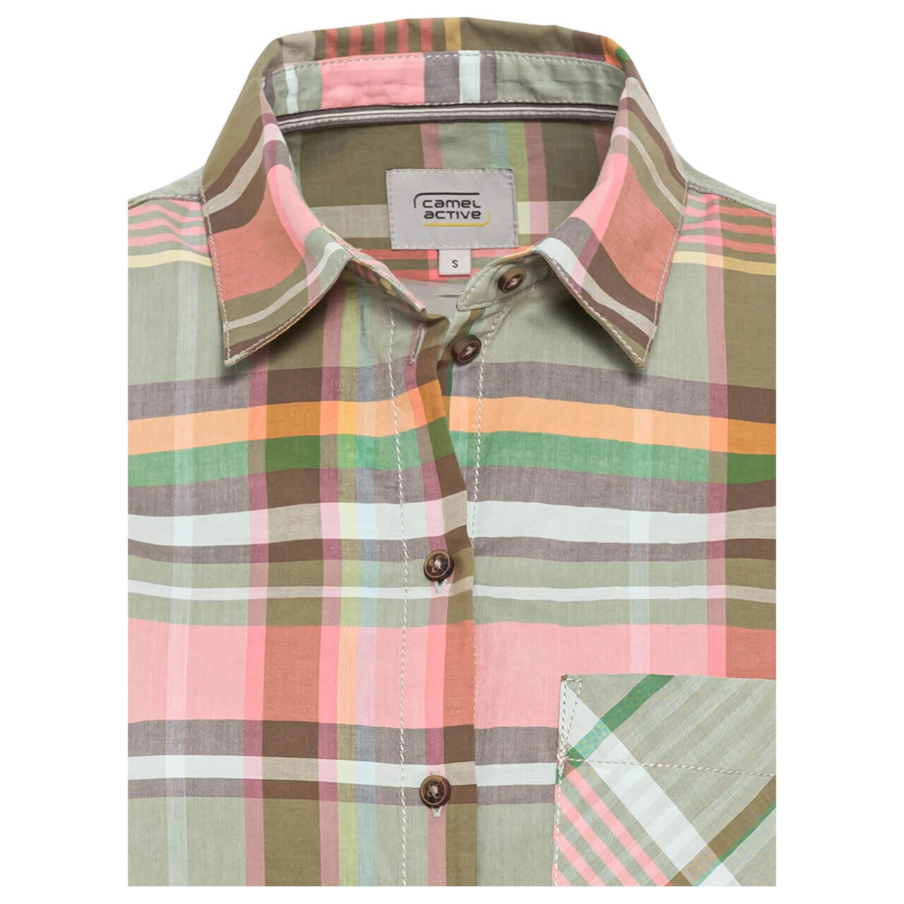 Jetzt wird’s bunt! Diese Camel active Damen Bluse überzeugt mit einem grünen Grundton, der um insbesondere rosa und gelbe Nuancen erweitert wird. Fertig ist das Karomuster in Multicolor! Dieser Mix aus allerlei Pastellfarben sieht jedoch nicht nur toll aus, er lädt auch zum Kombinieren ein. Individueller Style garantiert!
