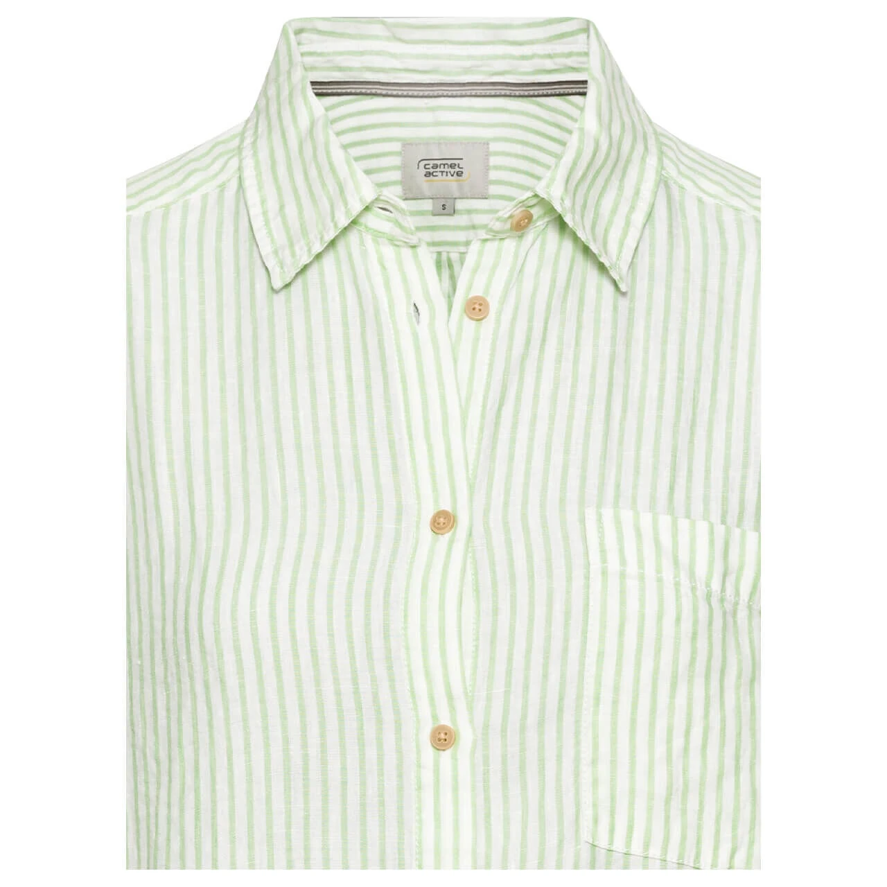 Mit der Camel active Damen Bluse holen Sie sich ein lässiges Kleidungsstück in Ihren Schrank. Das grün gestreifte Design sorgt in Kombination mit dem Leinenmix für einen zeitlosen Look, der immer gut aussieht. Besonders praktisch sind die krempelbaren Ärmel, mit denen Sie sich selbst für eine Länge entscheiden können.