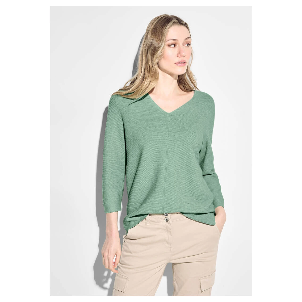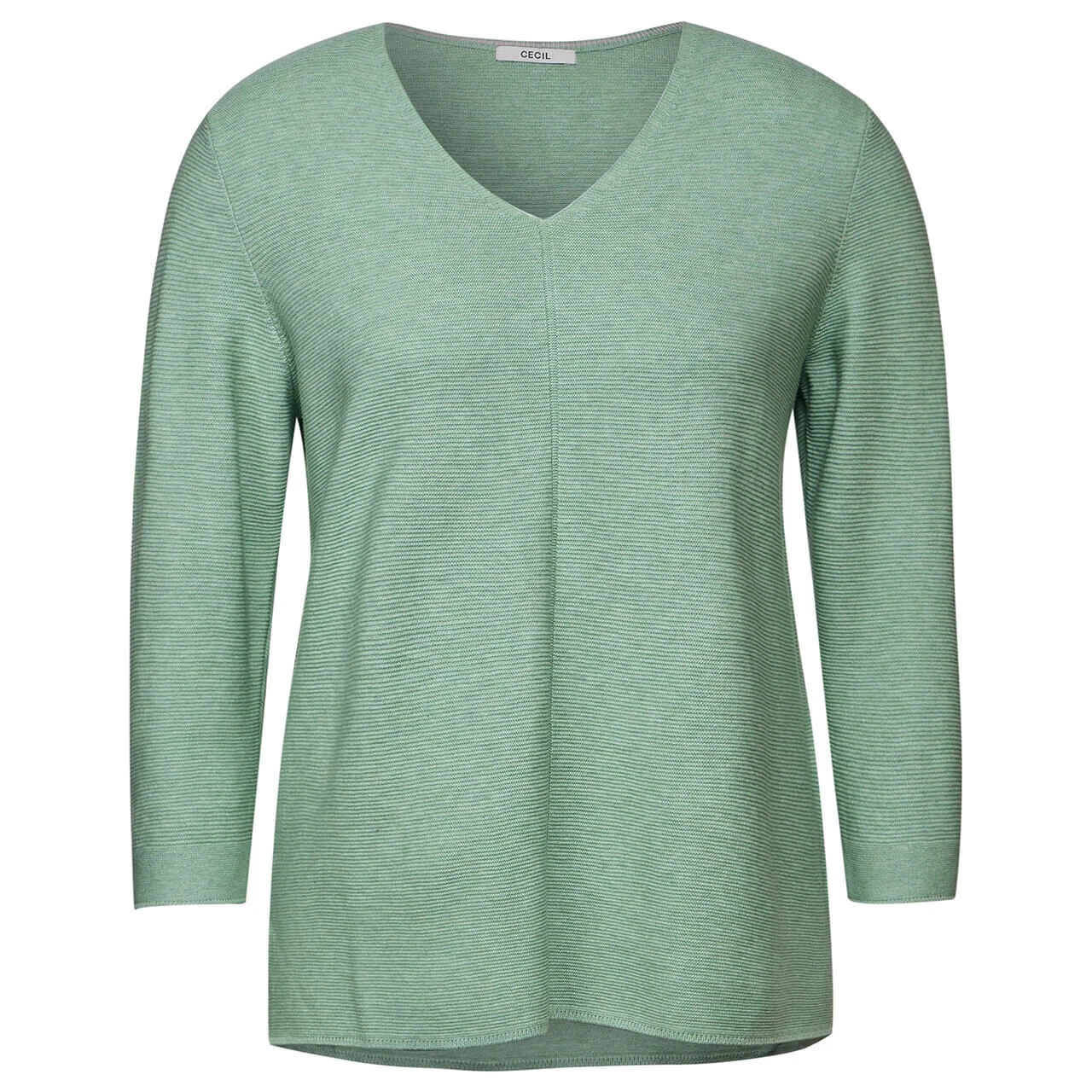 Damen 3/4 Arm Pullover Structured V-Neck in Mintgrün meliert
