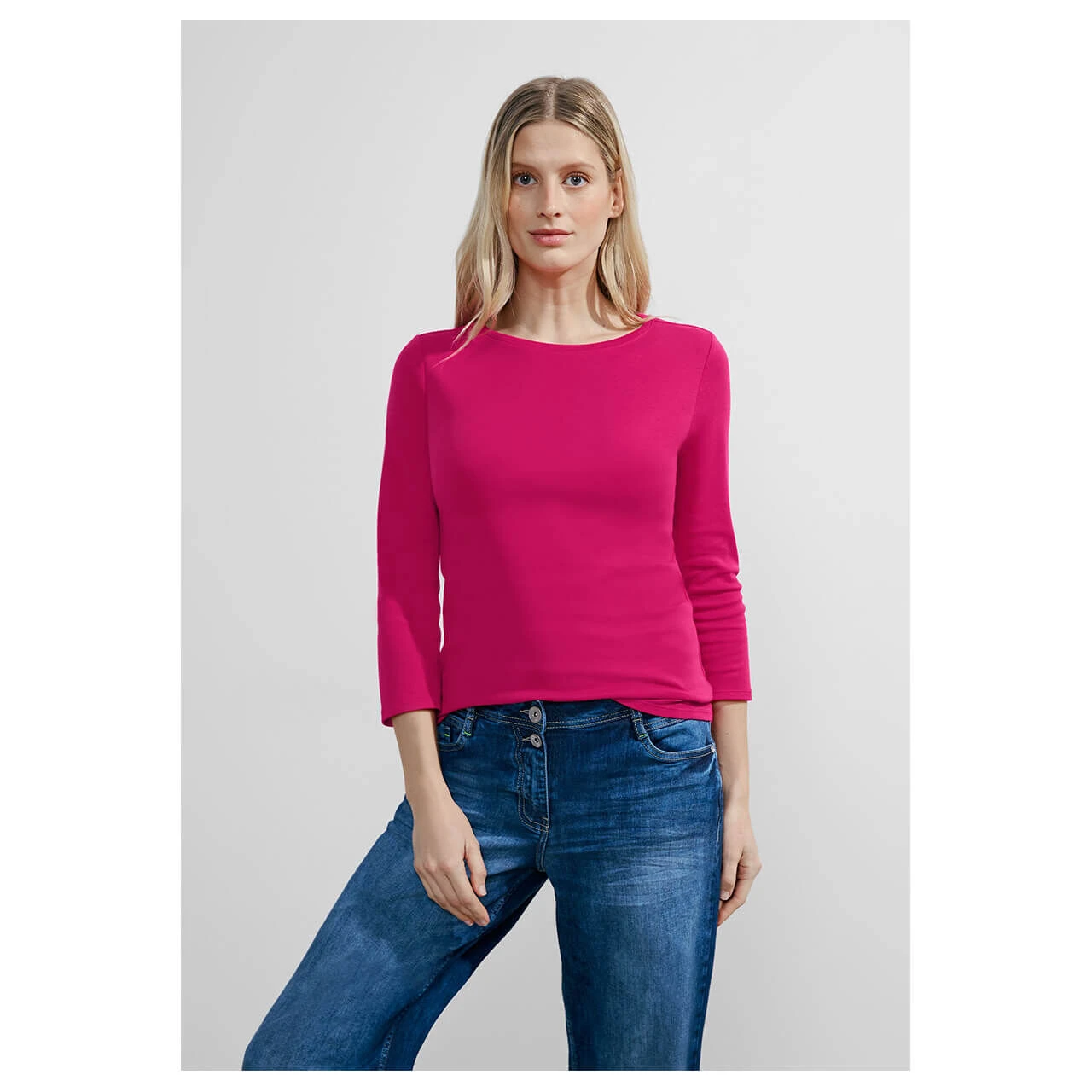 Damen 3/4 Arm Shirt Basic Boatneck in Pink