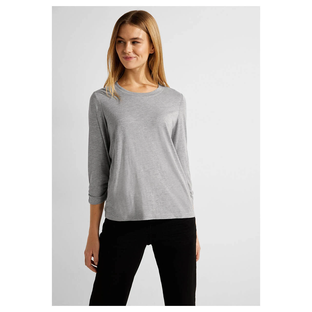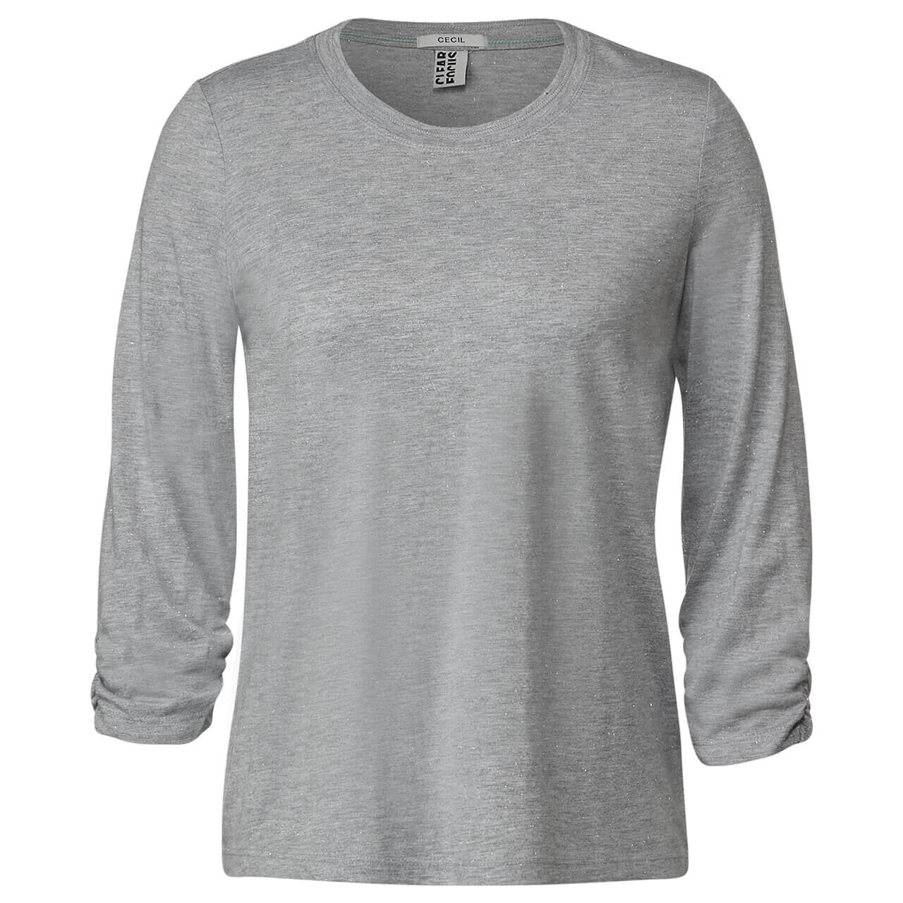 Glitzernde Akzente! Das Damen Shirt von Cecil mit gerafftem 3/4 Arm, Rundhalsausschnitt und in zarter Melange-Optik ist ein echter Hingucker. In softer Jersey-Qualität bringt es mit seinem funkelnden Design etwas Glamour in Ihren Alltag.