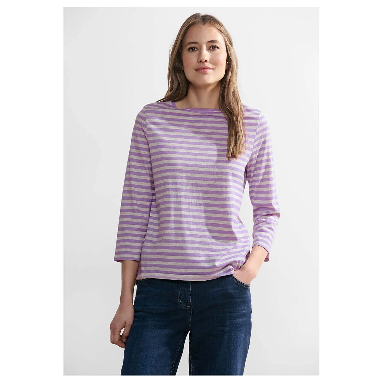 Damen 3/4 Arm Shirt Boatneck Melange Stripe in Flieder gestreift