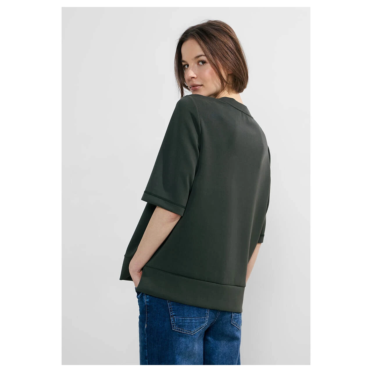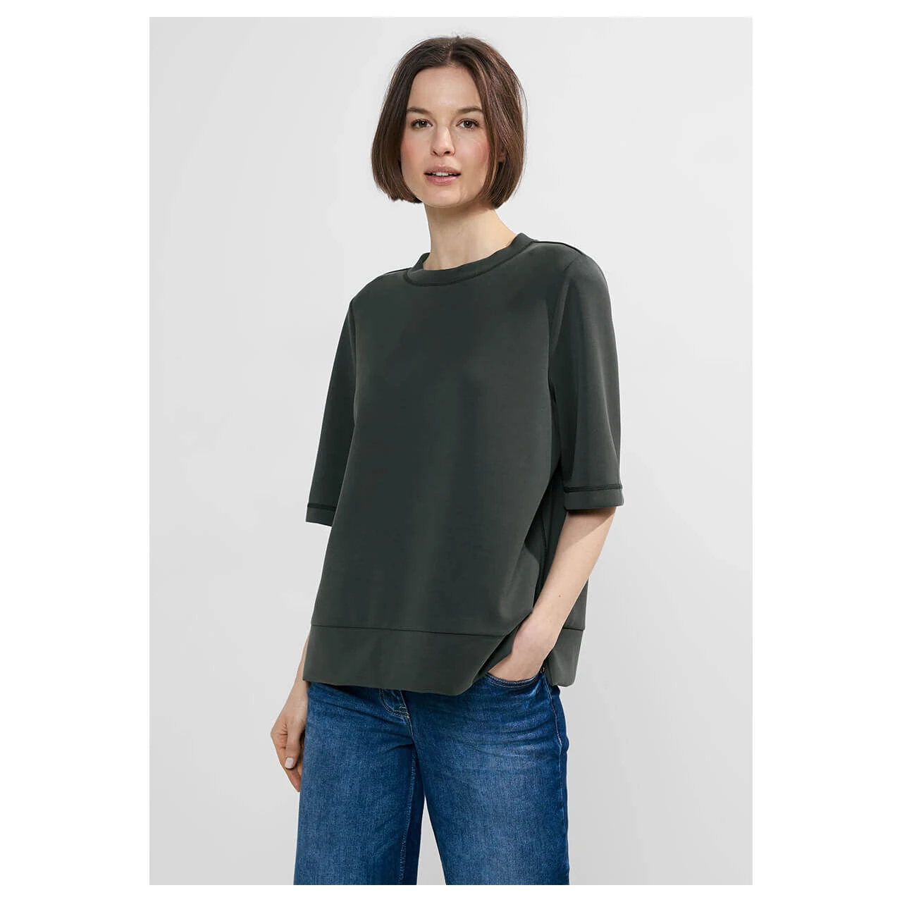Das Kurzarm Damen Sweatshirt von Cecil ist ein vielseitiges Oberteil mit einem Rundhalsausschnitt. Mit seinem breiten Bund, seitlichen Schlitzen und dekorativen Nähten an den Seiten bietet es nicht nur Komfort, sondern auch einen modernen Look. Der bequeme Materialmix mit Stretchanteil sorgt dafür, dass Sie sich den ganzen Tag über wohlfühlen können.