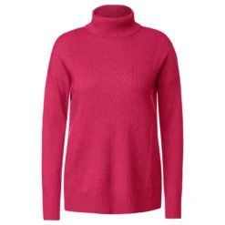 Damen Rollkragen Pullover Cosy Rib-Mix in Pink meliert