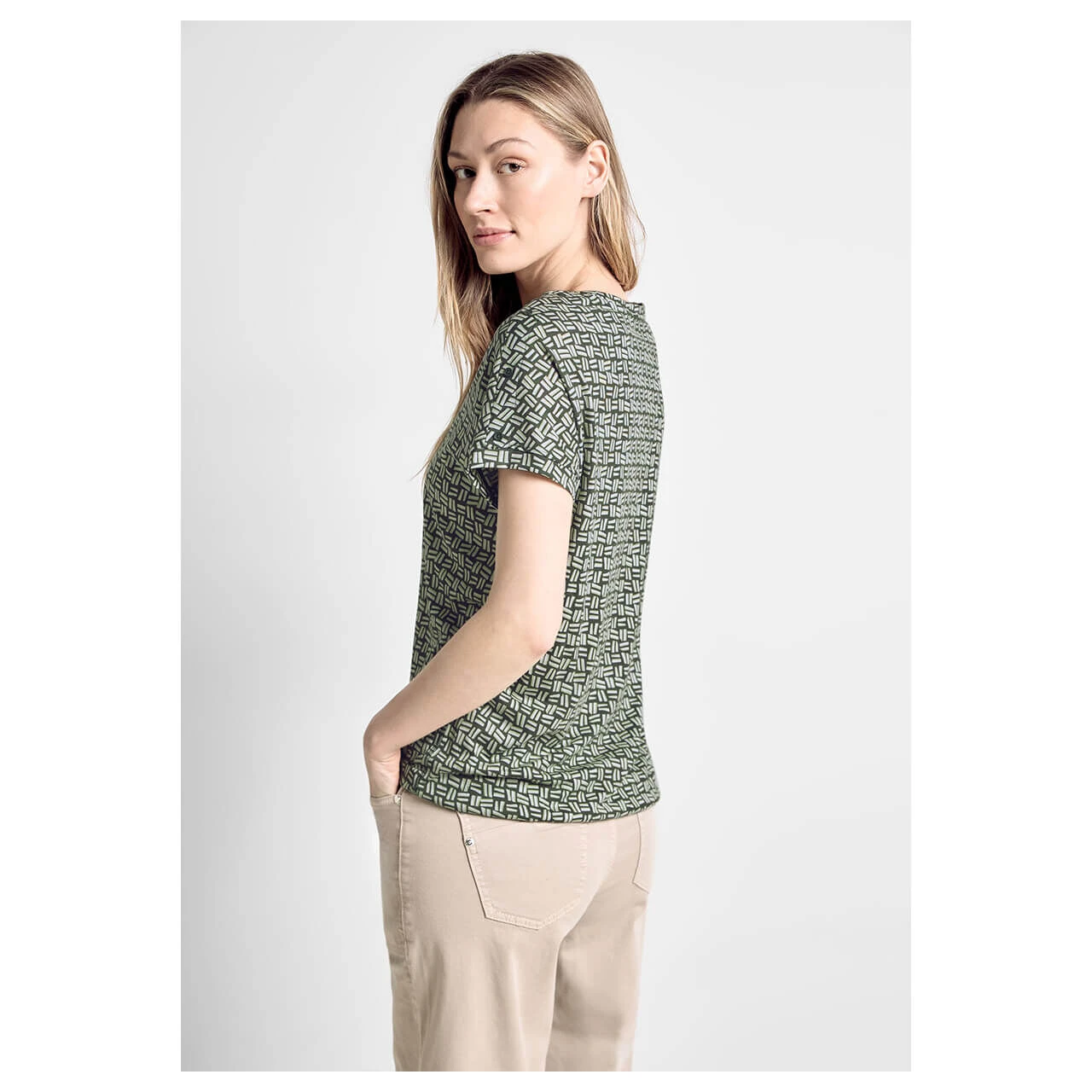 Damen T-Shirt Button with Minimalprint in Olivgrün