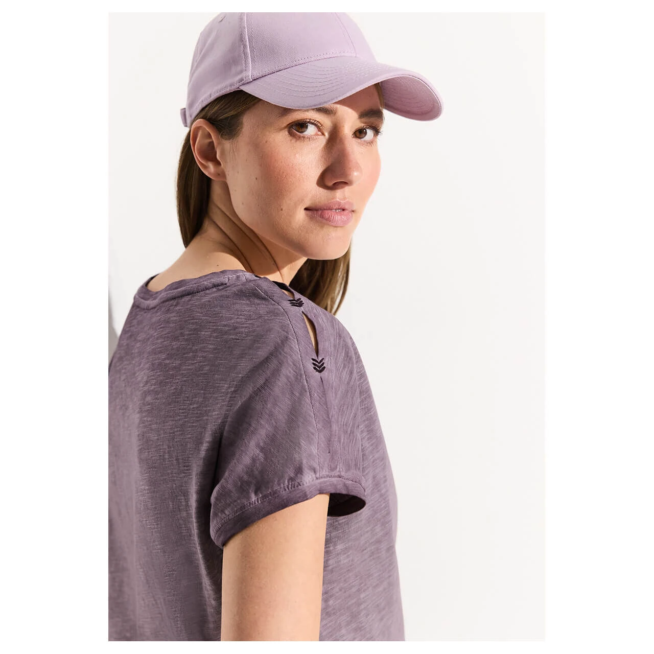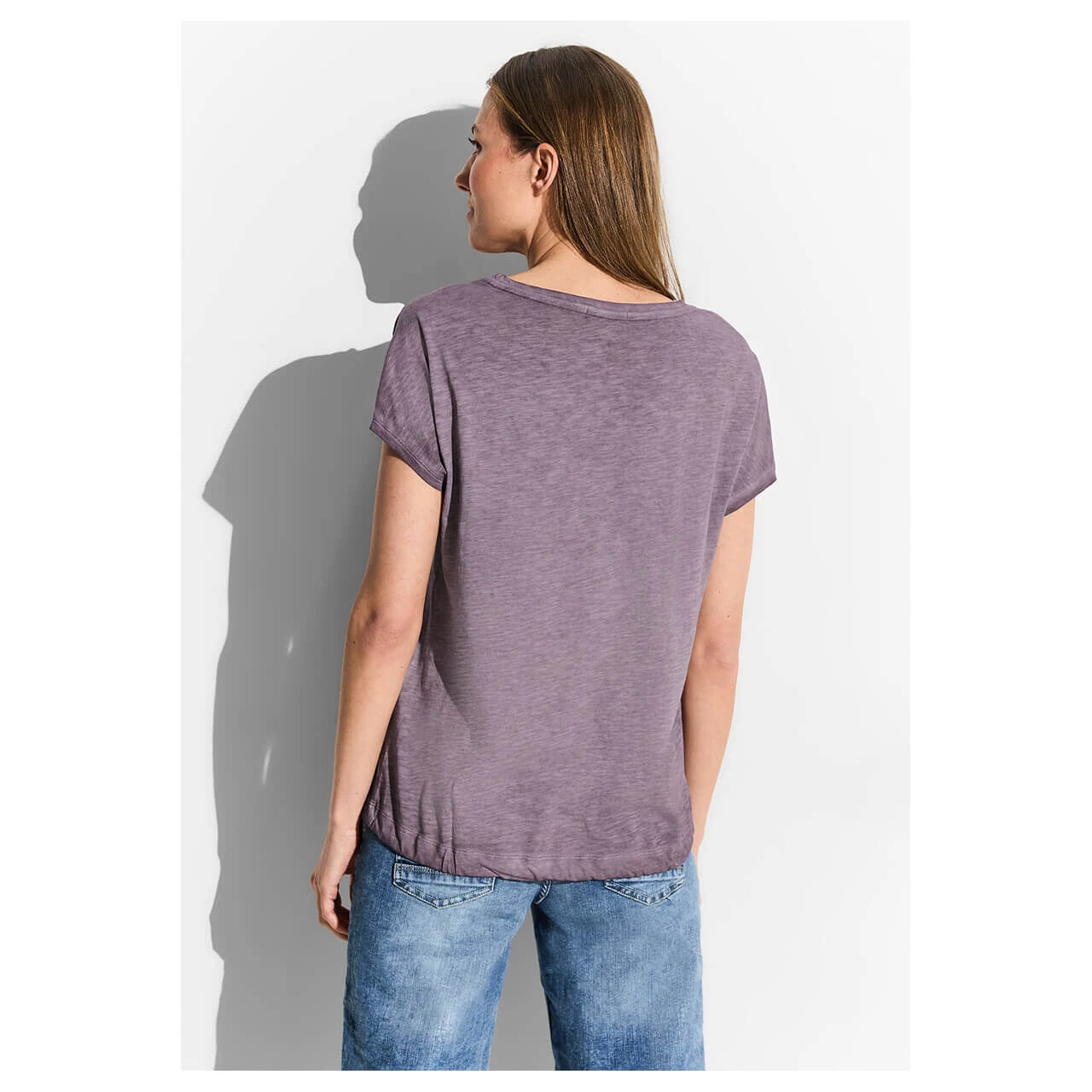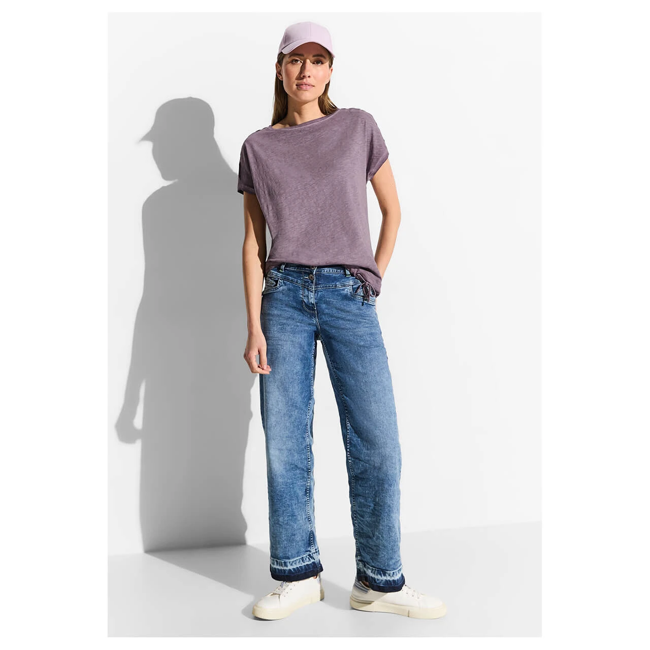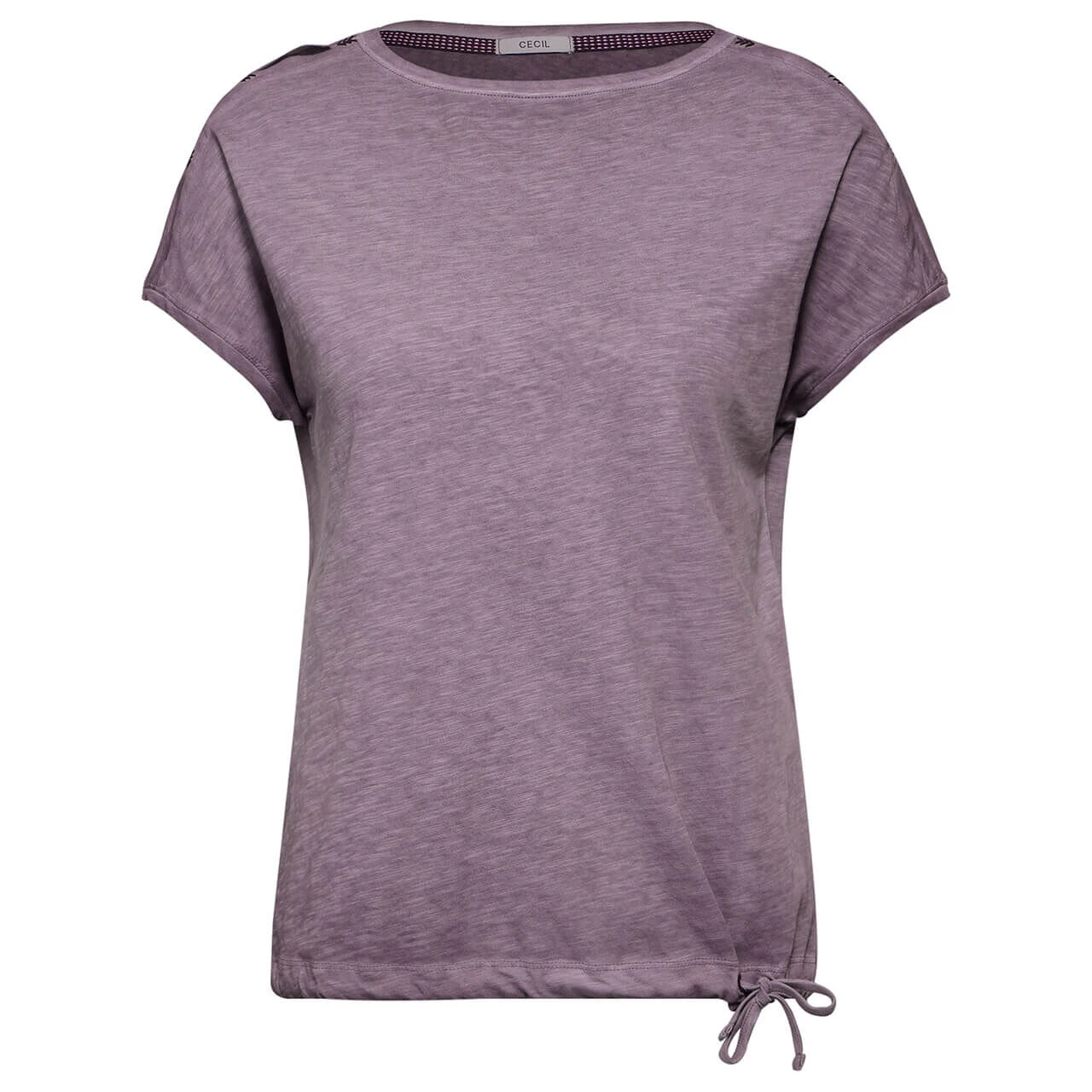 Das Damen T-Shirt von Cecil ist aus hochwertiger Baumwolle gefertigt, das für ein angenehmes Tragegefühl sorgt. Der U-Boot-Ausschnitt und der geraffte Saum mit einem charmanten Knotendetail verleihen dem Shirt eine elegante Note. Die luftigen Schlitze auf den Schultern und die Flammgarn-Melange-Optik sorgen für einen sommerlichen Style.