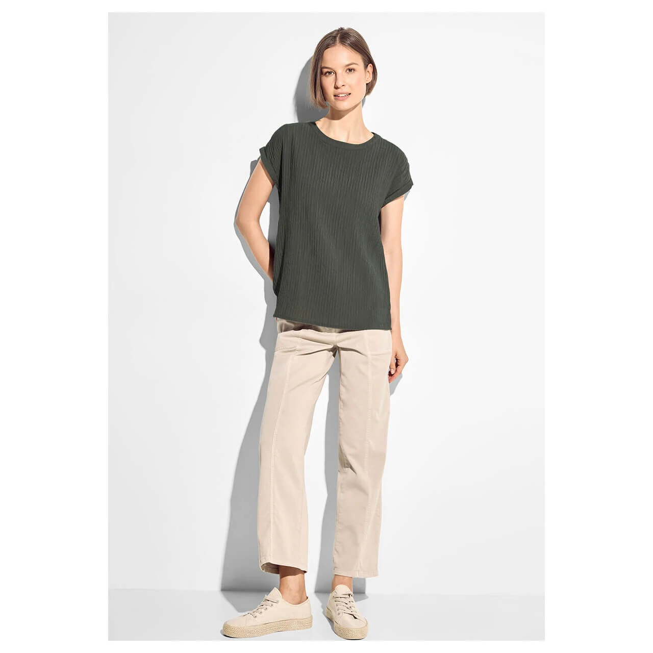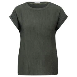 Das strukturierte Damen T-Shirt von Cecil ist ein zeitloses Oberteil mit einem modernen Touch. Pflegeleicht und bügelfrei ist es ein praktisches Kleidungsstück für den Urlaub, während die seitlichen Schlitze im Saum für Bewegungsfreiheit und einen lässigen Look sorgen.
