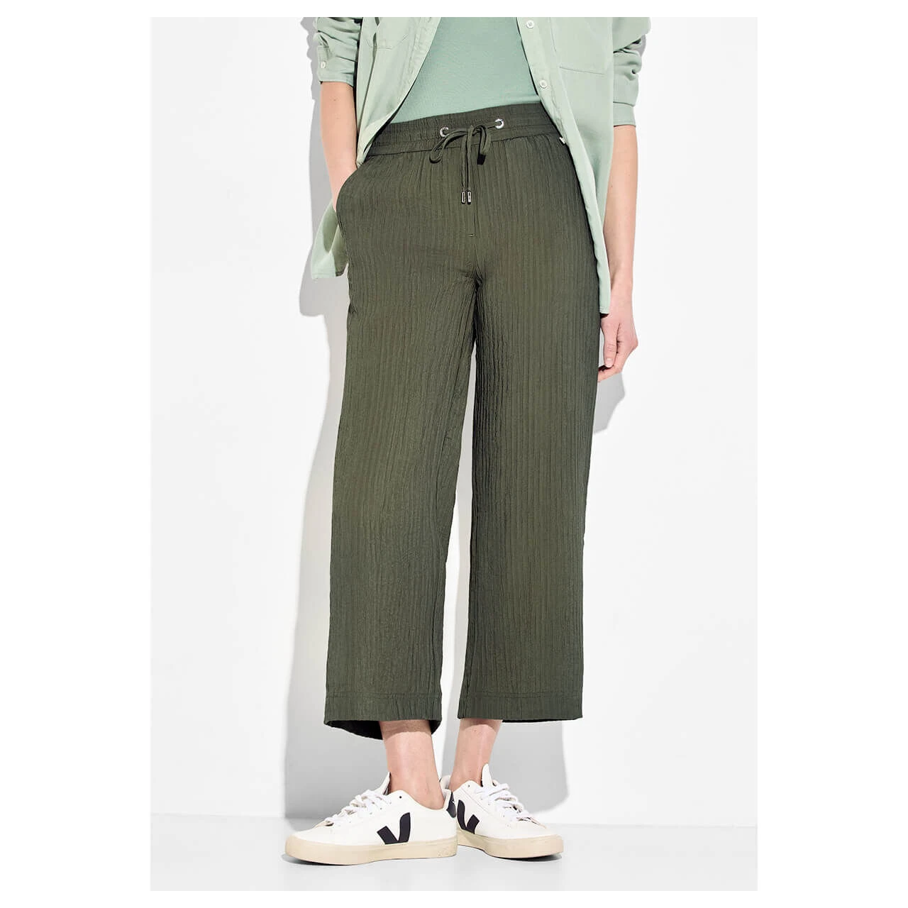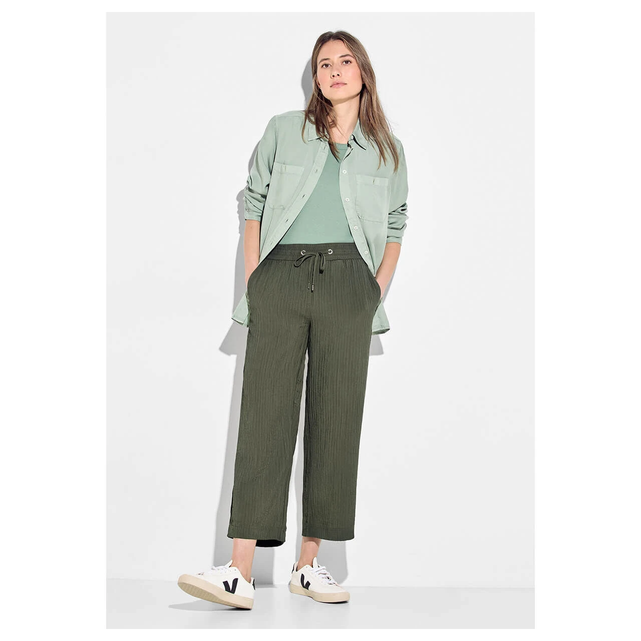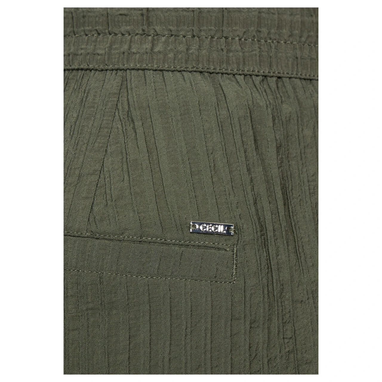 Für eine raffinierte Haptik sorgt Neele von Cecil Jeans! Das strukturierte Material macht aber auch optisch einiges her: So wirkt die Damenhose extravagant und außergewöhnlich. In Kombination mit der 7/8-Länge, dem Gummizug mit Schleife sowie dem zeitlosen Grünton schafft das Modell außerdem den Spagat zwischen Coolness und weiblichem Chic.