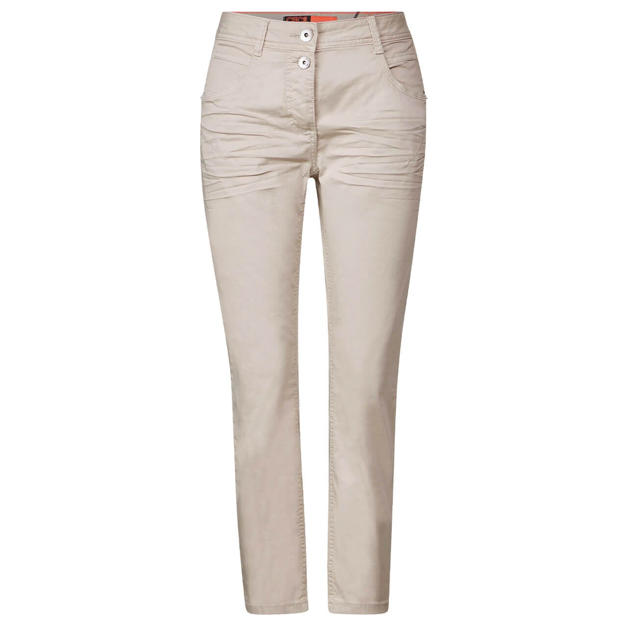 Stille Wasser sind tief! Die Cecil Scarlett liebt zurückhaltendes Design. In einem soften Beigeton mit gleichfarbigen Nähten und einem schlanken Schnitt setzt diese Damenhose auf einen schlichten Look. Die 7/8-Länge rundet diesen mit einer sportlichen Note ab.