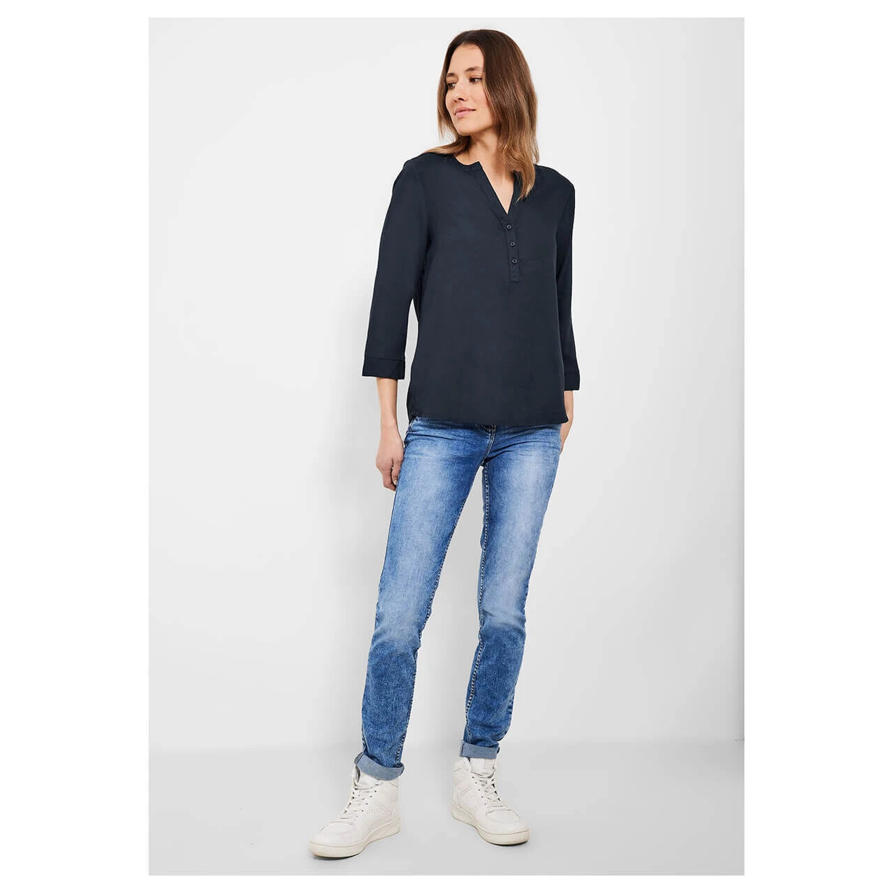 Ready to spring! Lässige, unifarbene Damen Bluse von Cecil in einem Tunikastyle mit 3/4-Ärmeln. Die Viskose trägt sich leicht und angenehm.