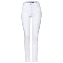 Jeanslook mal anders! Die Cecil Toronto überzeugt in reinem Weiß – die ideale Farbe für sommerliche Temperaturen. Ein enger Schnitt, ein aufwendiger Crushed-Effekt sowie eine schräge Münztasche verleihen der Damenjeans außerdem einen trendigen Style, den Sie flexibel kombinieren können.