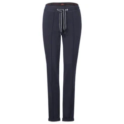 Sportiv, lässig, aber mit einer eleganten Note: Tracey von Cecil Jeans punktet in einem lässigen Chinoschnitt mit festgenähtem Umschlag, den sie mit einem Joggingstyle kombiniert. Das Band hat bei der Damenhose besonders viel Aufmerksamkeit bekommen: Mit Streifen und Wording versehen ist es sehr detailverliebt.