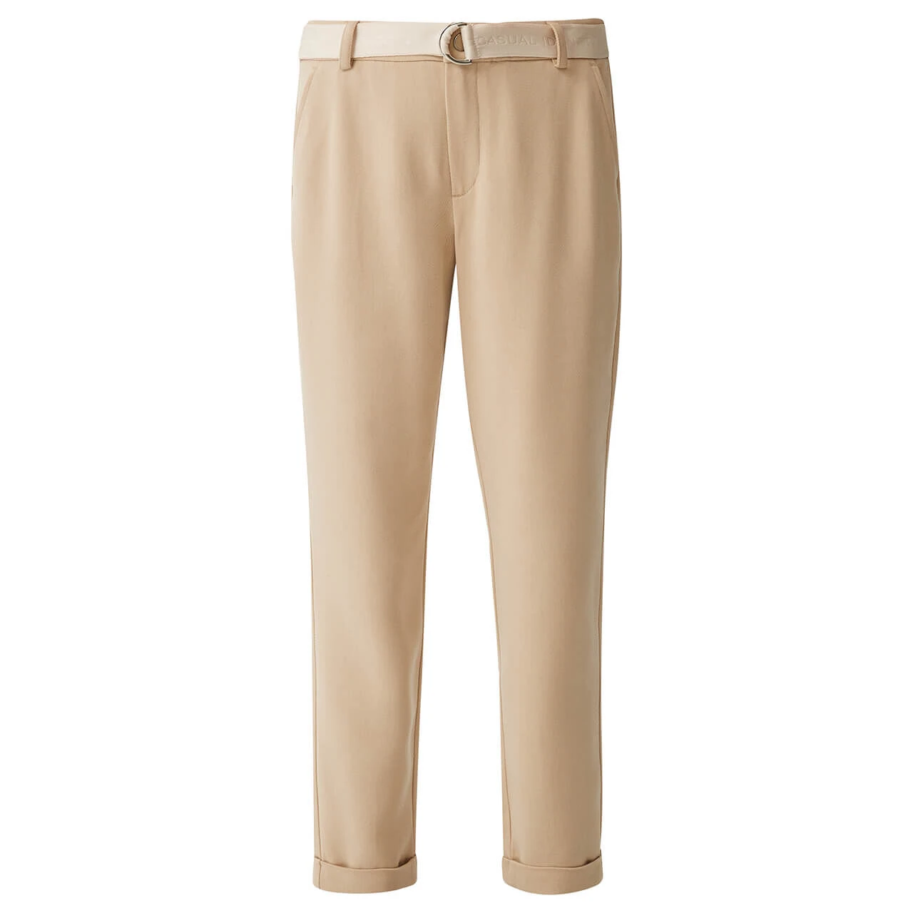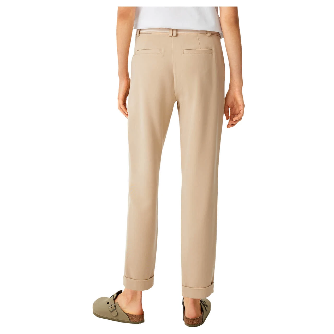 Die Comma Damenhose besteht aus reinem Lyocell – einem weichen, fließenden Material, das knitterarm ist und Feuchtigkeit sehr gut aufnimmt. Das Bein mit 7/8-Länge endet bei dieser sportiven Damenhose mit einem Umschlag.