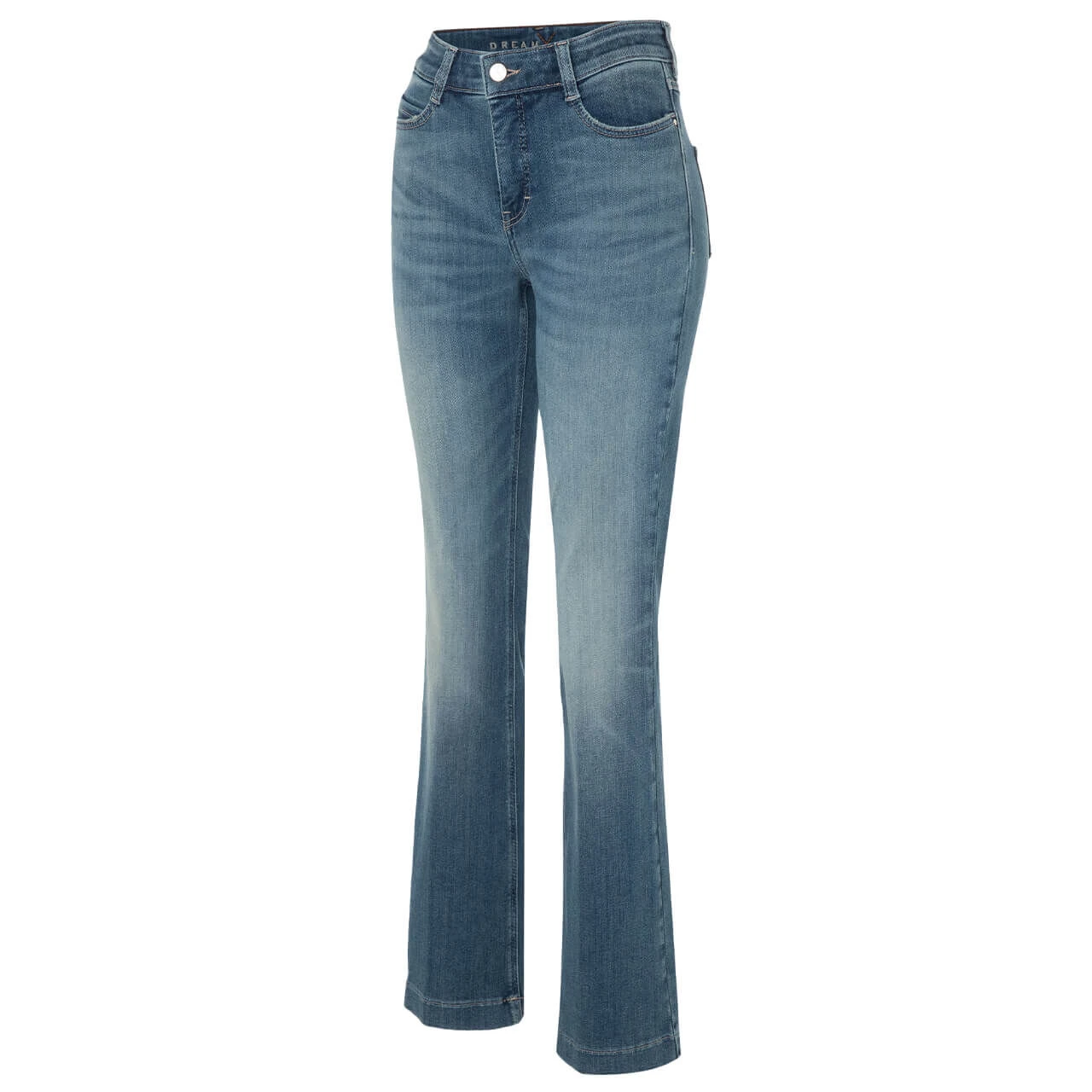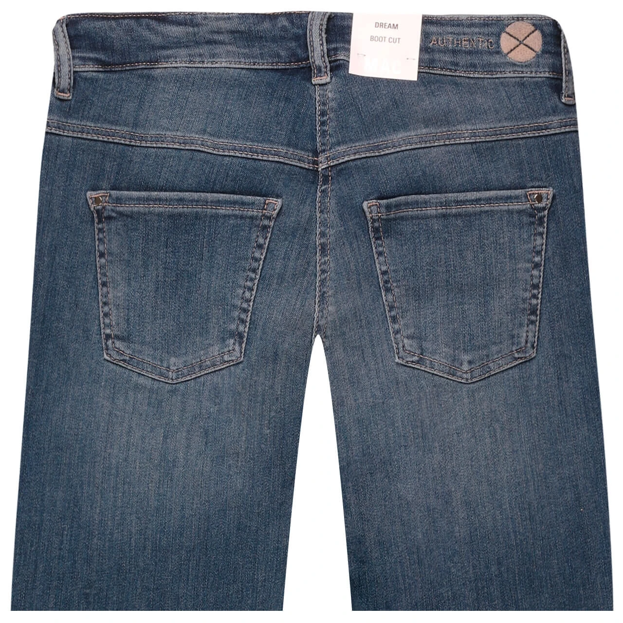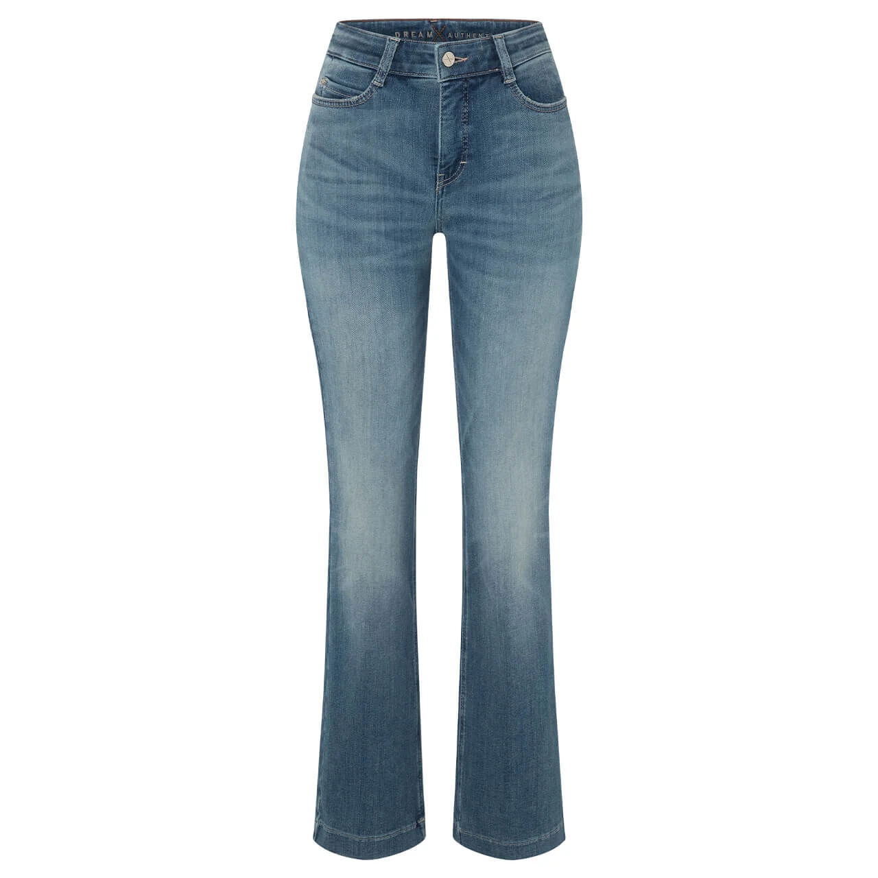 Die MAC Dream Boot zeigt Modebewusstsein! Mit ihrem ausgestellten Bein ist die Passform derzeit sehr gefragt. Die zeitlose Denimfarbe trägt modische Verwaschungen.
