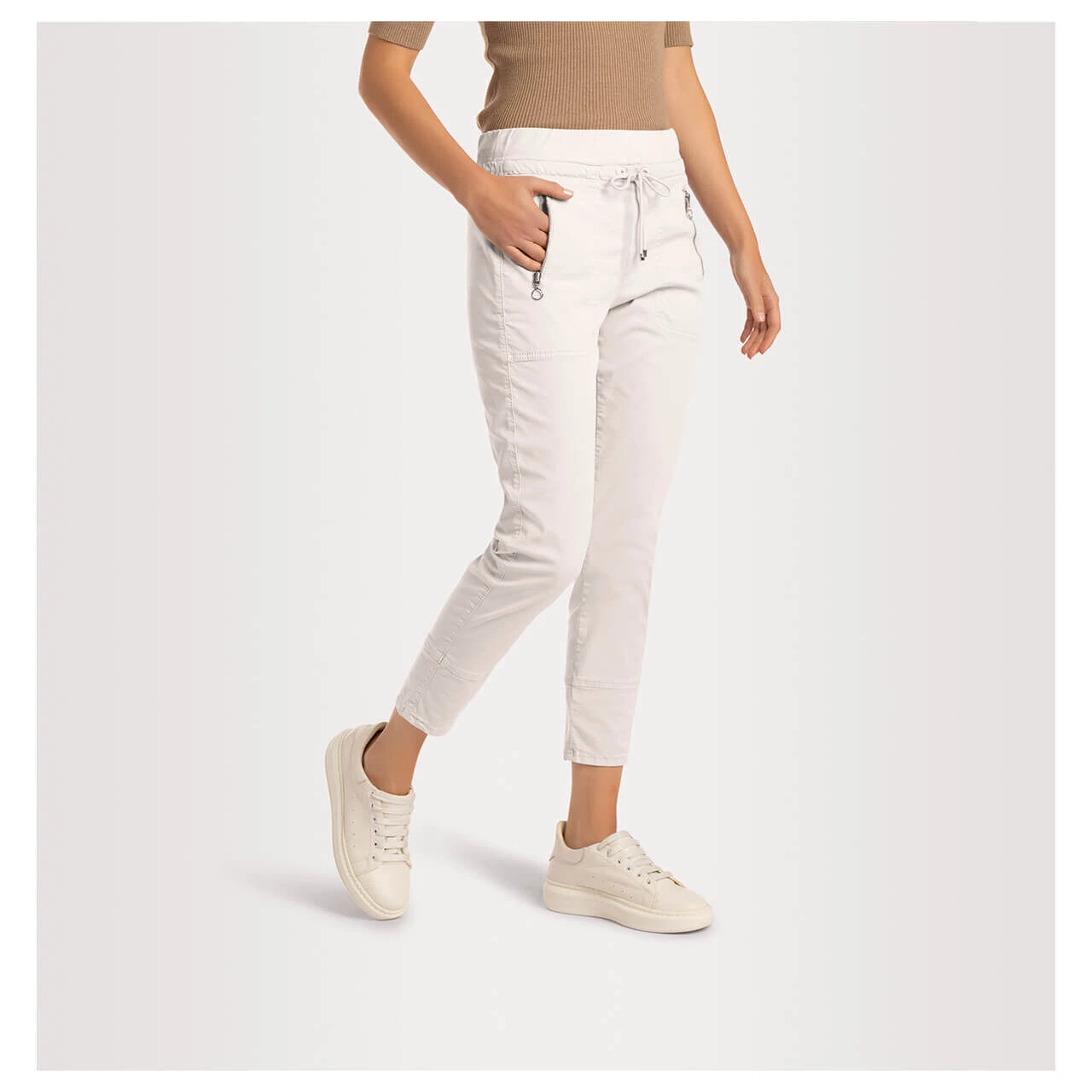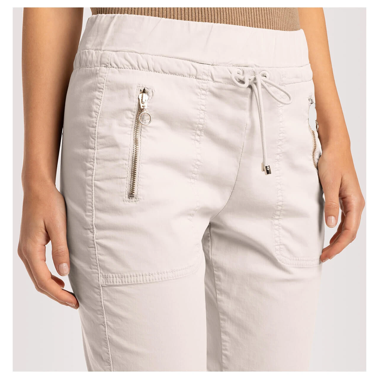 Das eine Kilo mehr oder weniger am Bauch stört Sie mit der Easy von MAC Jeans nicht mehr, denn die verkürzte Damenhose hat einen elastischen Bund. Silberne Details ergänzen das sportliche Aussehen mit eleganten Nuancen.