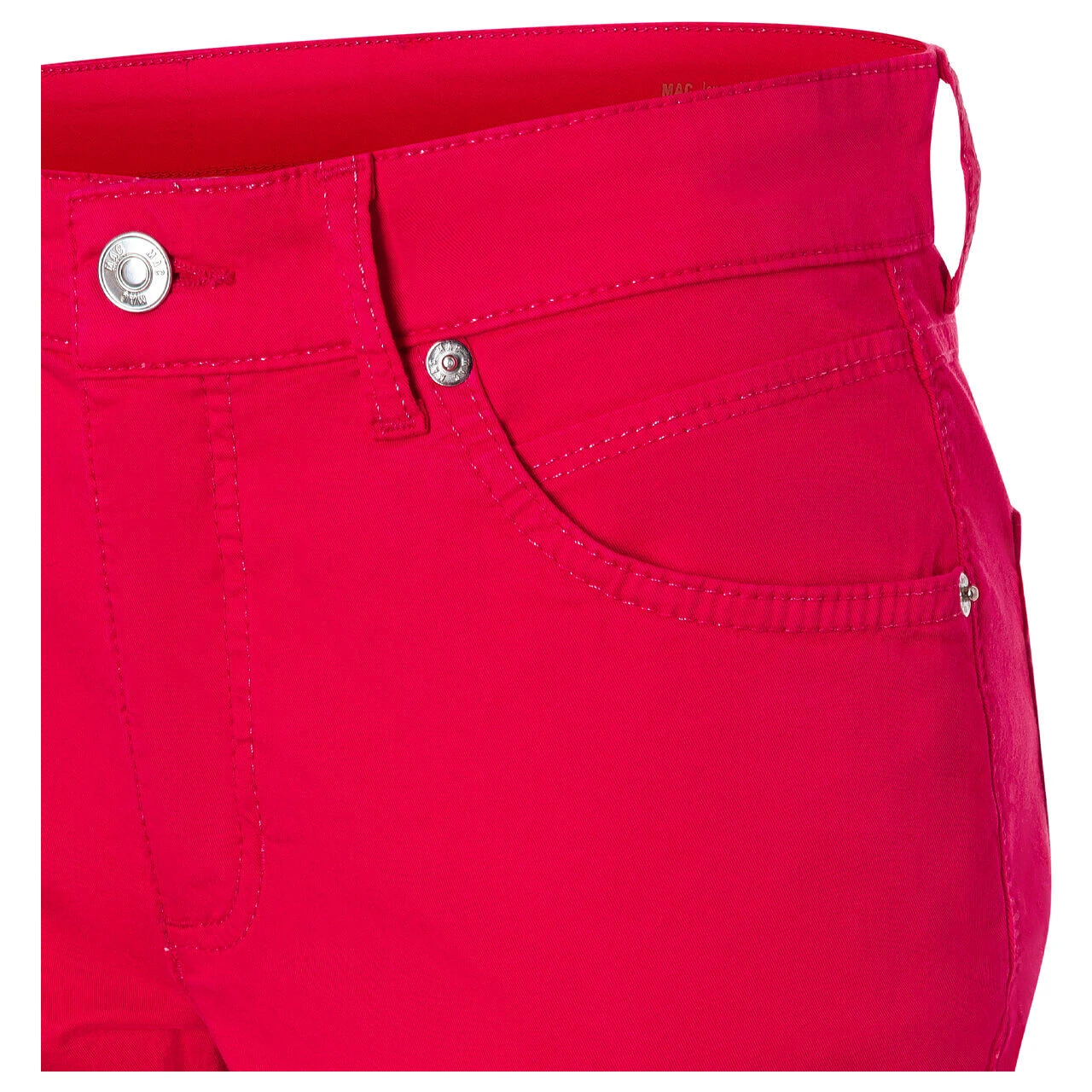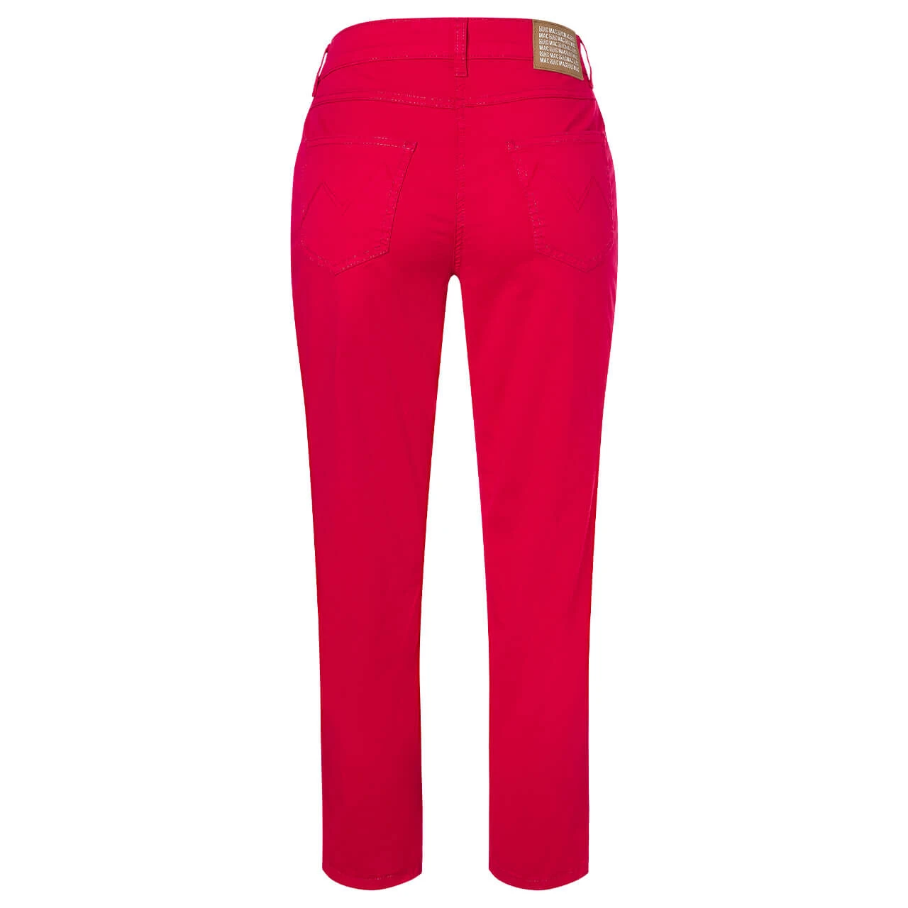 Power Pink! Die MAC Melanie wirkt mit ihrem kräftigen Pink energiegeladen und selbstbewusst – diese Eigenschaften möchte die 7/8 Damenhose gerne auf Sie übertragen. Eine weiche, softe Materialqualität, silberne Nieten und ein brauner Echtlederpatch dekorieren den femininen Stil.