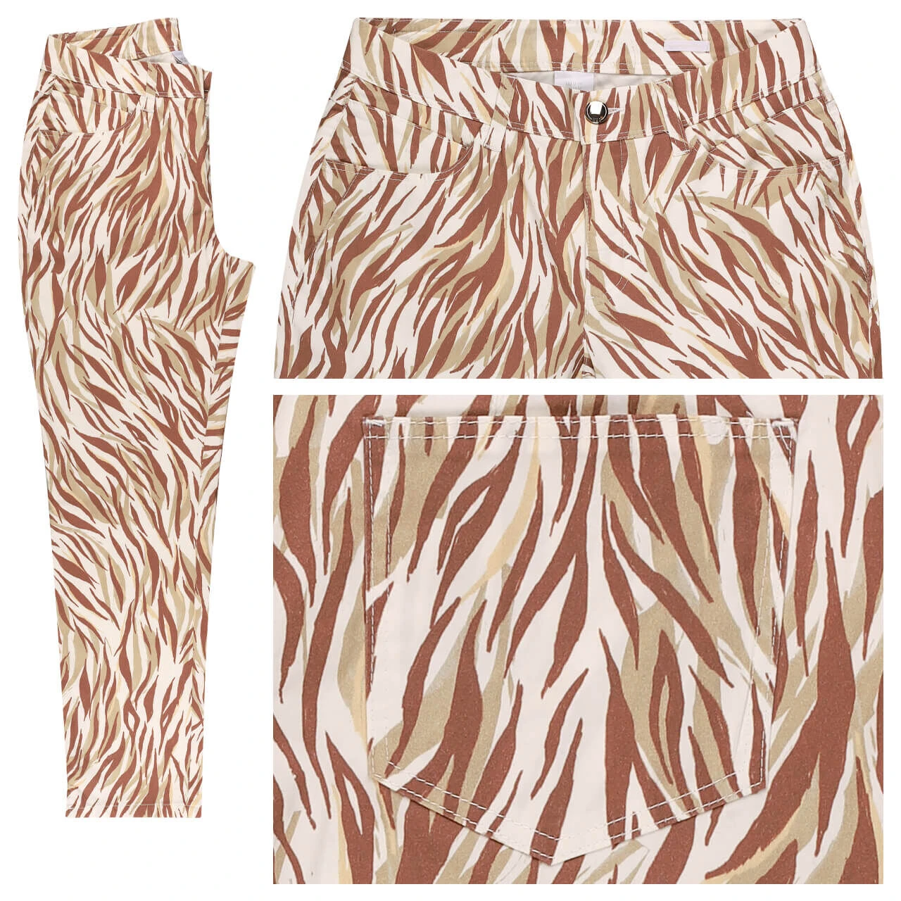 Einen ganz individuellen Look hat diese MAC Melanie: Der Alloverprint in verschiedenen Brauntönen und Cremeweiß verschafft der verkürzten Damenhose einen besonders aufregenden, aber harmonischen Look.