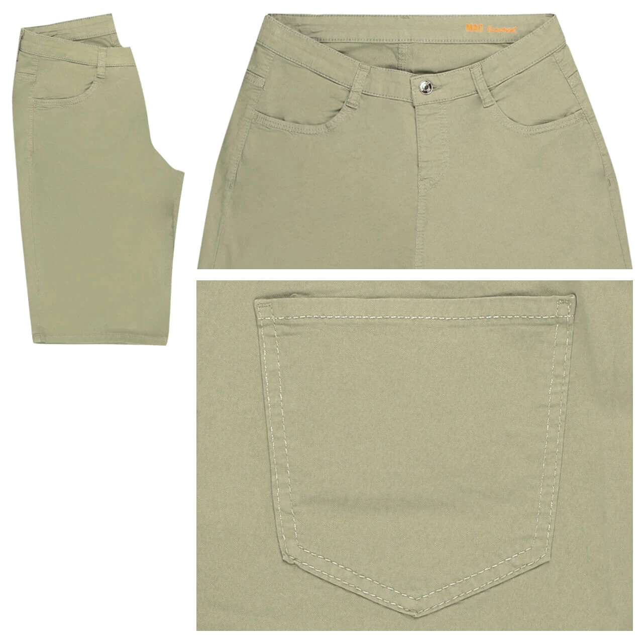 Ein zartes Grün und dazu die Kontrastfarbe Orange: Die MAC Shorty weiß, wie man gut aussieht! Die Shorts ohne Nieten und Münztasche hat einen leichten, weichen Griff. Für einen sportlicheren Look können Sie die Damenhose auch krempeln!