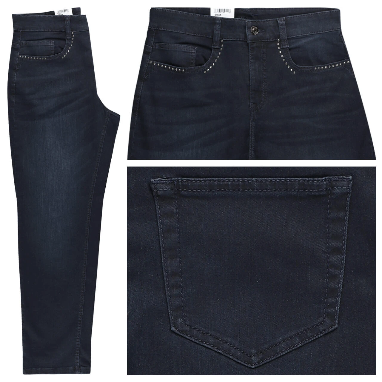 Der tiefe Blauton wird durch glänzende Steine unterhalb der Fronttaschen veredelt – ein dezentes Highlight an dieser MAC Stella! Der stretchige Denim verspricht Ihnen angenehmen Komfort.