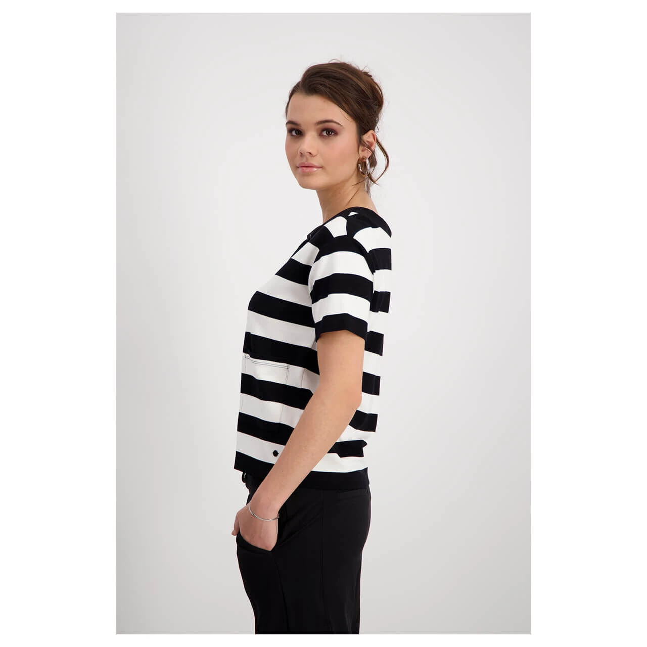 Damen Kurzarm Sweatshirt in Schwarz gestreift