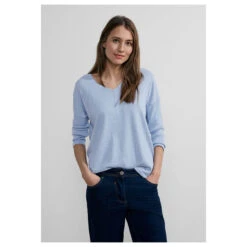 Cecil Damen 3/4 Arm Pullover Oversized V-Neck Tranquil Blue Melange