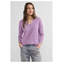 Cecil Damen 3/4 Arm Pullover Oversized V-Neck Sporty Lilac Melange