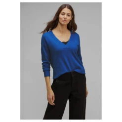 Street One Damen Pullover V-neck Sweater Fresh Intense Gentle Blue Melange