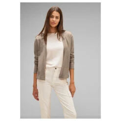 Street One Damen Strickjacke Short Open Cardigan Bleached Sand Melange