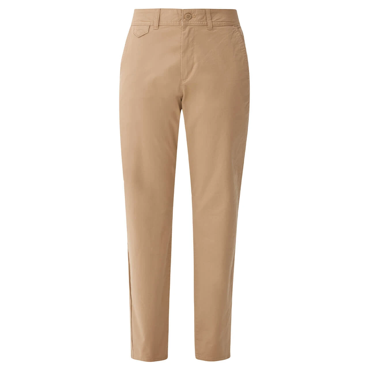 Für einen besonderen Look integriert die Chinohose von s.Oliver Jeans eine Münztasche – allerdings nur mit einer angedeuteten Klappe. Mit ihrem hellen Braun greift die elegant-sportive Damenhose eine der klassischen Farben für diese Form auf.