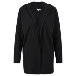 Damen Hoodie Shirtjacke in Schwarz meliert