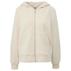 Wie auf Wolken schweben Sie mit dieser Damen Sweatjacke von s.Oliver. Der unglaublich softe Materialmix verspricht Ihnen ein unverwechselbares Tragegefühl, das Sie garantiert nicht mehr missen möchten. Zugleich sorgen ein lockerer Schnitt, gerippte Ärmelbündchen und eine praktische Kapuze für den typischen Sweaterlook mit sportlicher Note.