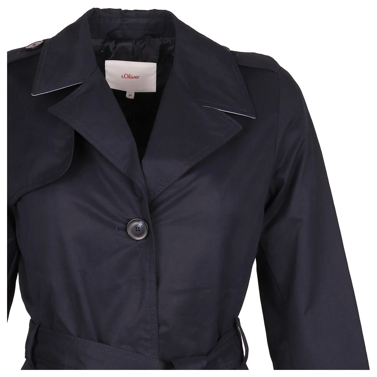 Trenchcoats kleine Schwester! Die s.Oliver Damenjacke greift diesen klassischen Stil dank Kragen und Taillengürtel toll auf. Ansonsten bleibt die Damenjacke ihrem individuellen Stil aber treu, denn sie kommt mit nur einer Knopfreihe aus. In zeitlosem Dunkelblau gehalten, versteht sie sich außerdem aufs flexible Kombinieren mit vielen anderen Kleidungsstücken.