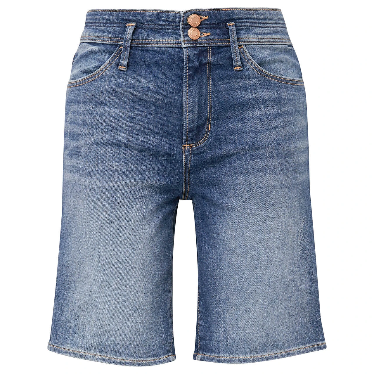 Stretch Damen Jeans Bermuda Betsy in Mittelblau verwaschen mit Used-Effekten