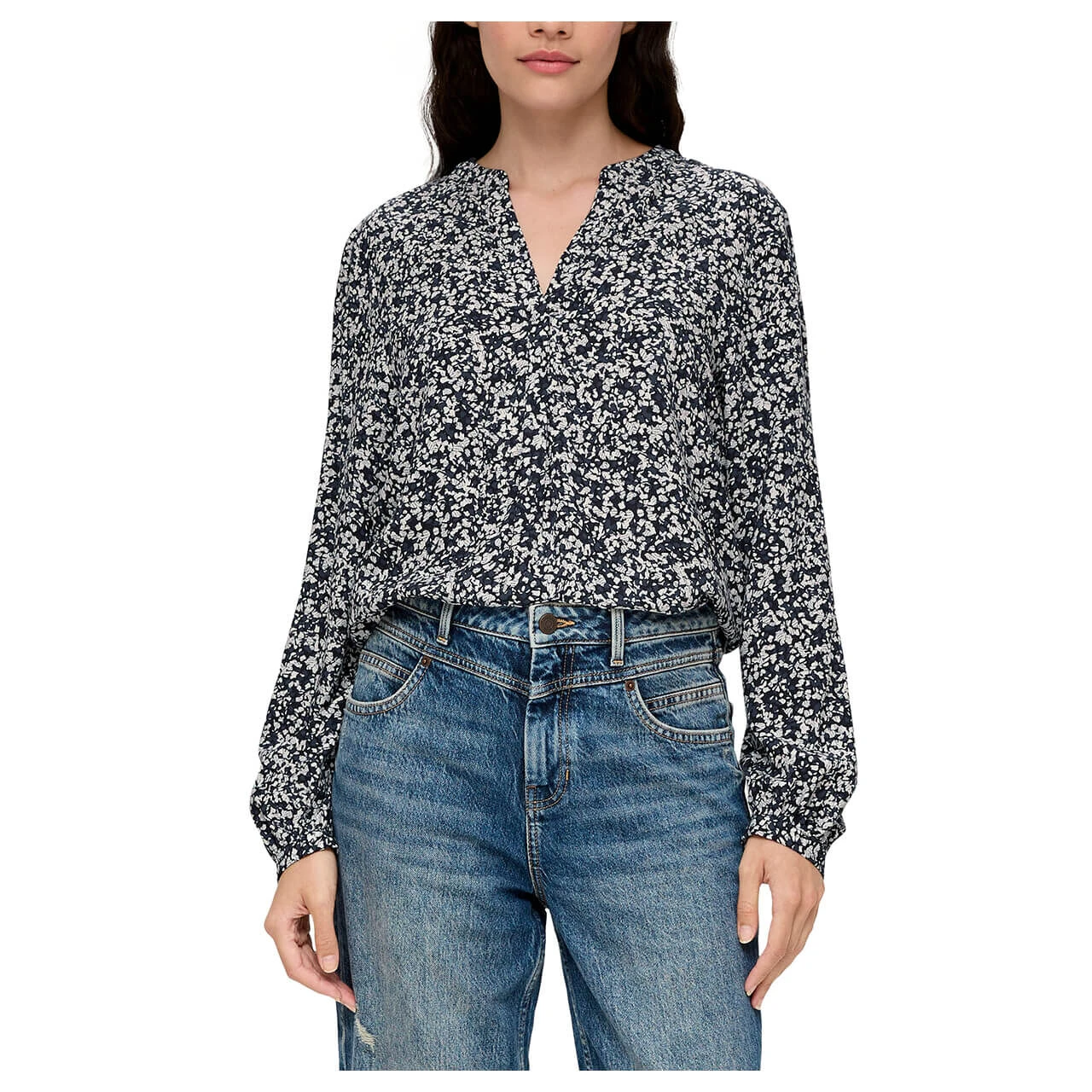 Flexibel kombinierbar wird die Damen Bluse von s.Oliver durch ihren dezenten Print! Das elegante Modell in beruhigendem Dunkelblau können Sie praktischerweise auch mit gekrempelten Ärmeln tragen, da die Manschette aufknöpfbar ist.