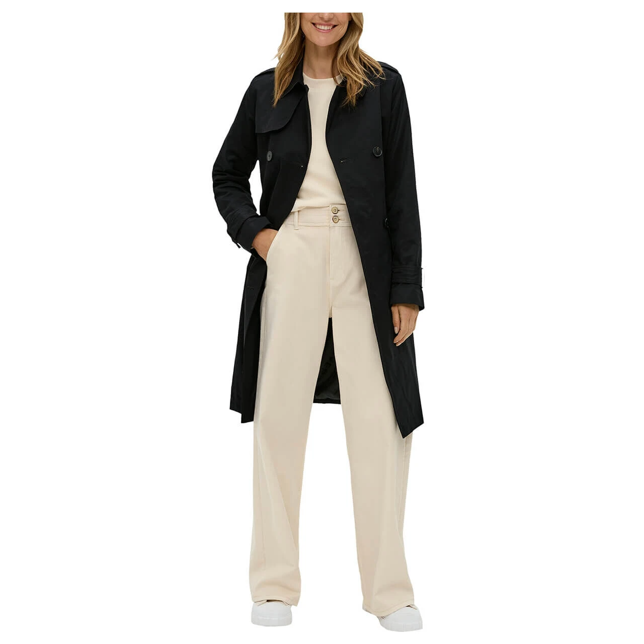 Eine wasserabweisende Oberfläche verleiht der lang geschnittenen s.Oliver Damenjacke eine sehr softe Haptik, von der Sie nicht genug bekommen werden! Der Trenchcoat überzeugt außerdem in einem klassischen Schwarz, wodurch die Übergangsjacke zu einem zeitlosen Basic wird.
