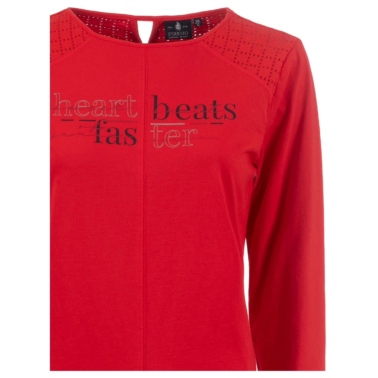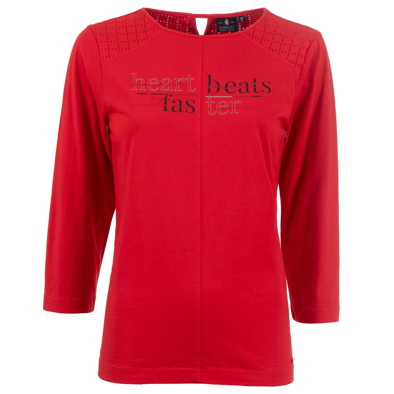 Absoluter Eyecatcher! Das Damen T-Shirt von Soquesto leuchtet in einem kräftigen Rot und bringt Sie damit ganz sicher zum Strahlen. Das dezente Wording und der raffinierte Rücken mit Spitze setzen gekonnte Highlights und vollenden den Look des Oberteils.