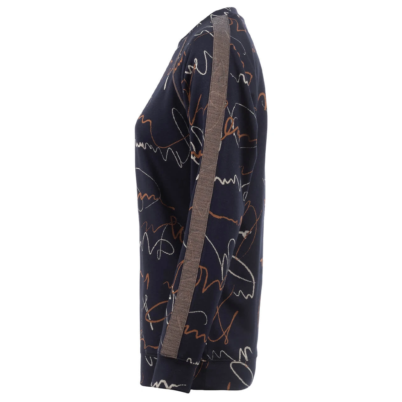 Bei dem Soquesto Damen Sweatshirt müssen Sie gar nicht erst versuchen, ein Wording zu erkennen – das langärmelige Modell hat einen abstrakten Fantasieprint. Ein brauner Streifen auf den Armen schafft einen sportlichen Look!